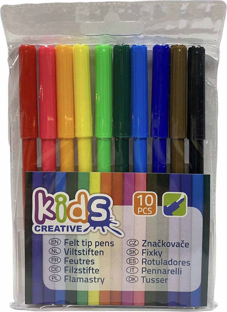 10 stuks viltstiften van kids creative. 10 verschillende kleuren om de mooiste creaties mee te maken!
