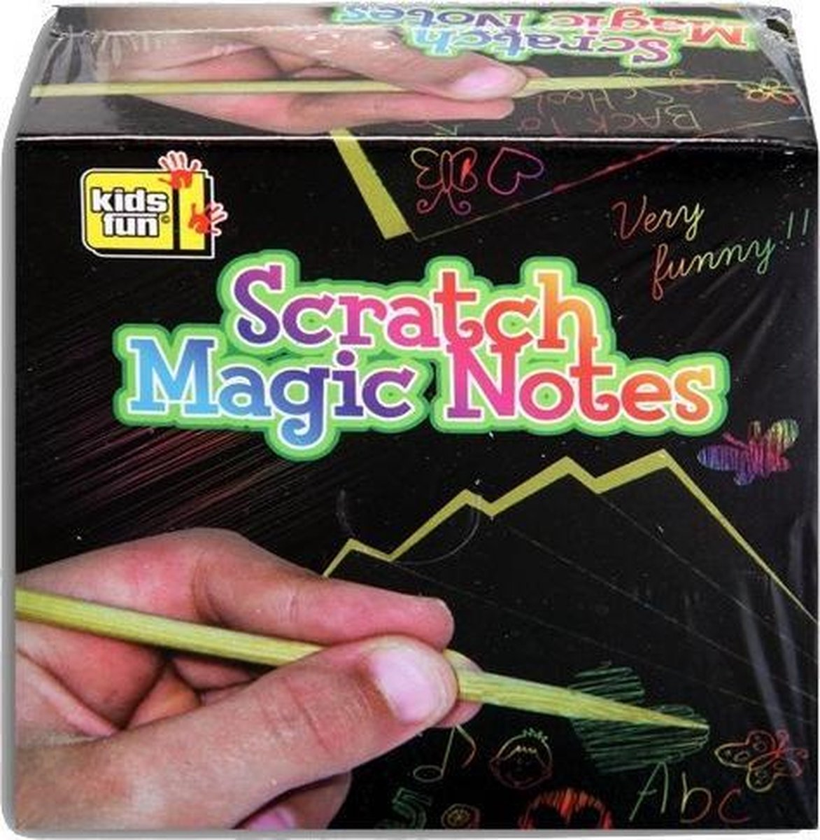 Kids Fun magische krasset In deze set vind je 125 zwarte vellen met een mooie, gekleurde metallic-laag eronder. Met de meegeleverde kraspen maak je zo de mooiste creaties. Laat je fantasie de vrije loop! Specificaties: Kleur: zwart Geslacht: junior Materiaal: papier/hout Afmetingen krasvellen: 9 x 9 cm (L x B) Leeftijd: vanaf 6 jaar Inhoud: 125 Krasvellen 1 Houten kraspen