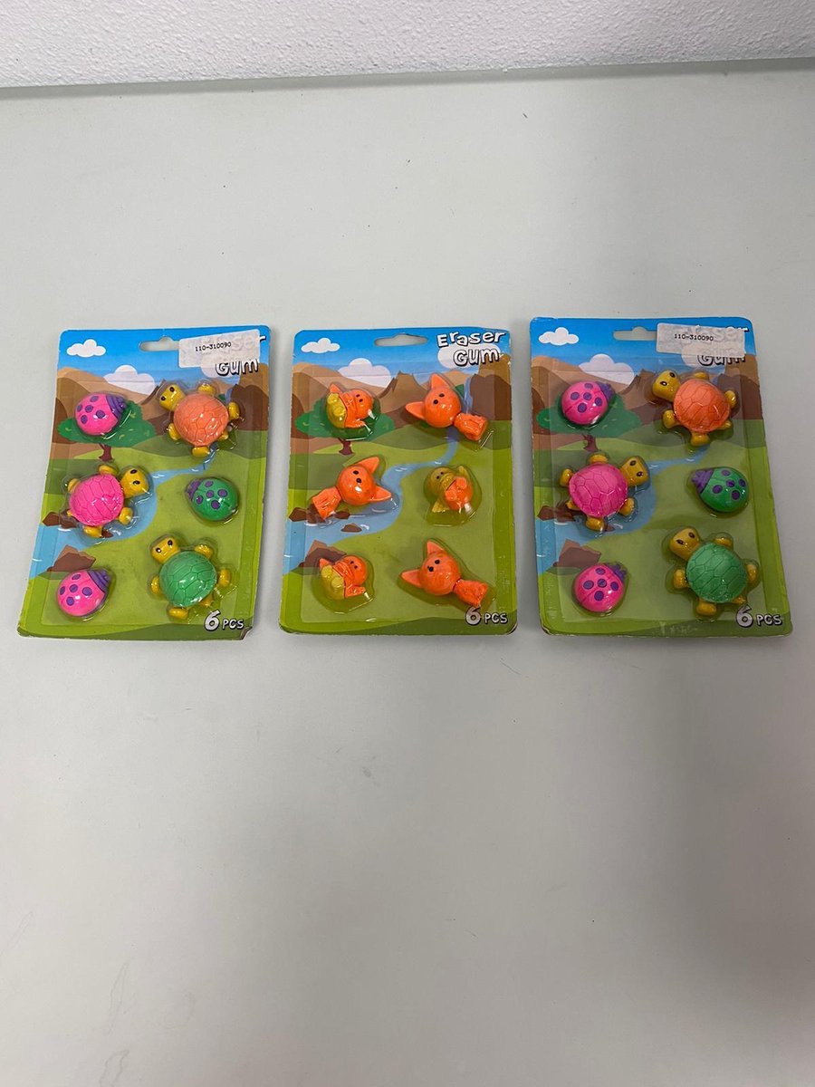 Kindergummen in leuke vormen (diverse dieren en kleuren) - set van 3 keer 6 stuks, van zeer goede kwaliteit en ideaal voor het weggummen van potlood! Leuk voor kinderen.