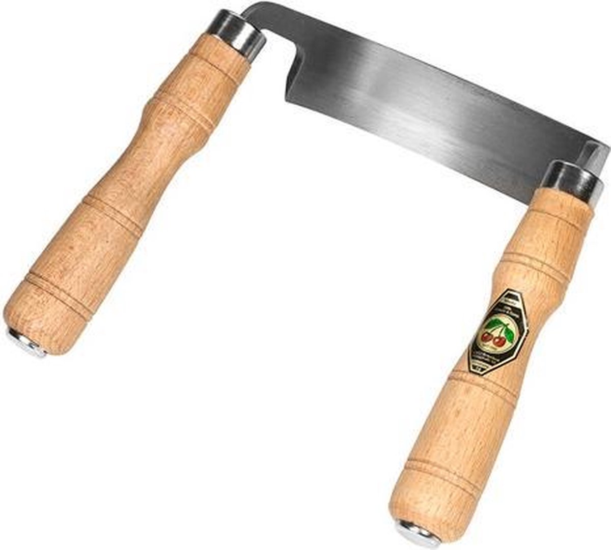 Kirschen tweehandscorp met een snijvlak van 17 cm, snijhoek 25 graden. Beuken handgrepen haaks op het lemmet.