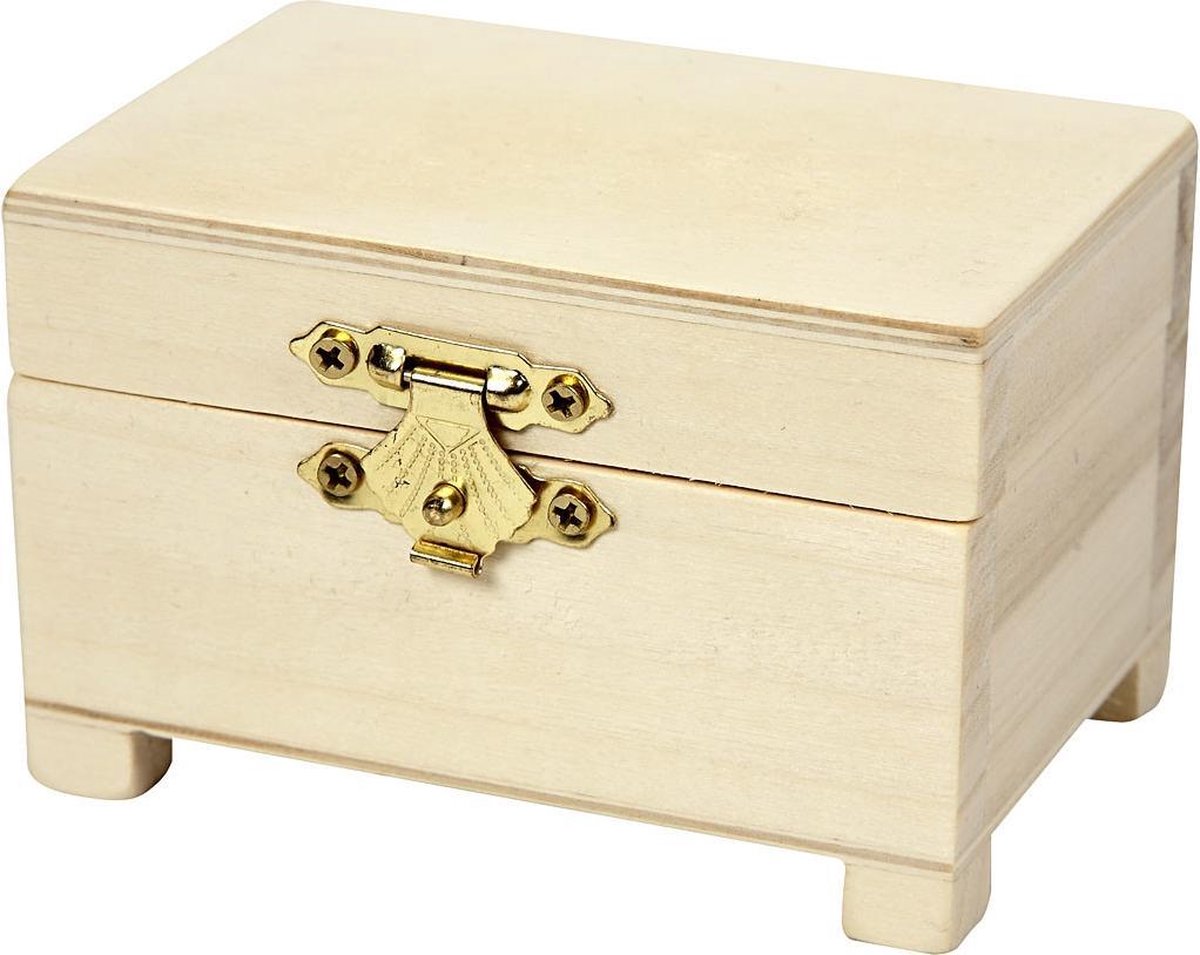 Houten kist met kleine pootjes en metalen sluiting.Houten kist met kleine pootjes en metalen sluiting.