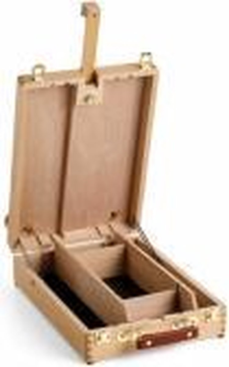 Kistezel Liffey, Afmetingen 30x40x10, Gestoomd beukenhout, Verstelbare doekhoogte, Maximale doekhoogte 60cm, In hoek verstelbaar, Compact inklapbaar, Handig comfortabel handvat, Ideaal voor atelier, op tafel of in het veld