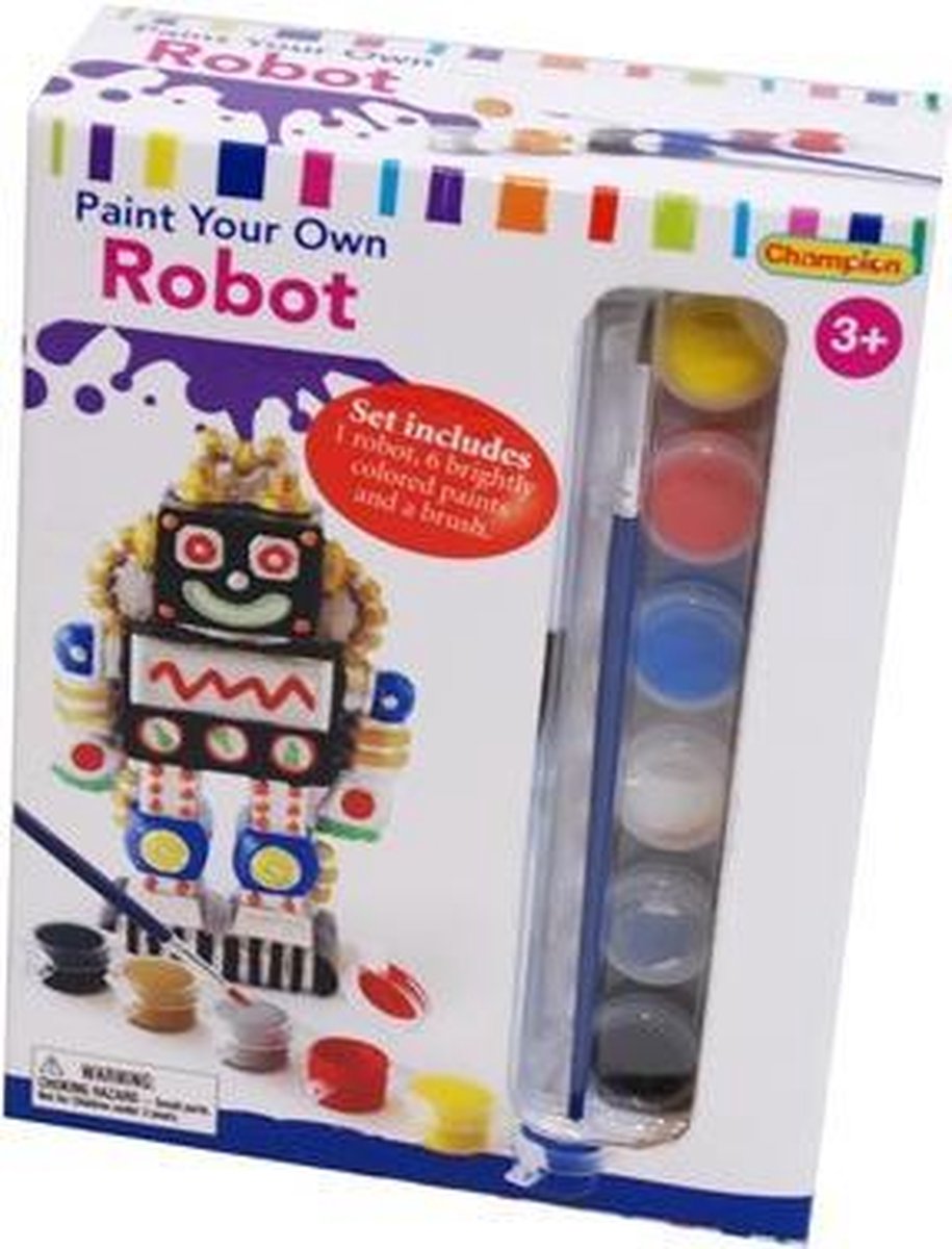 Kleur en verf je eigen robot. Geef de robot de mooiste of stoerste kleuren, zoals je zelf wilt. De set is geheel compleet met 6 kleuren verf en een penseel.