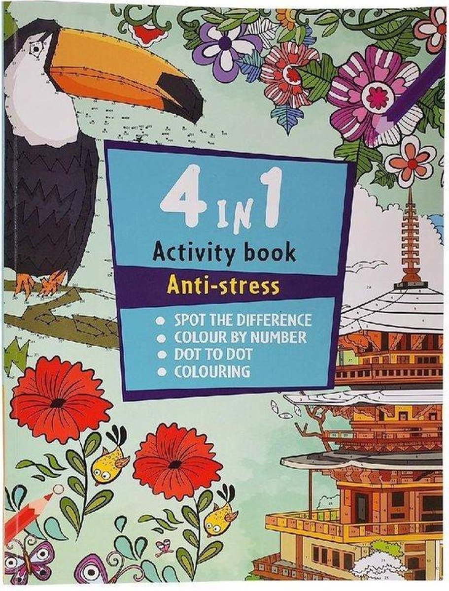 Kom helemaal tot rust met dit anti-stress 4in1 activiteitenboek voor volwassenen. In dit boek vind je kleurplaten, kleuren op nummer, zoek de verschillen en van punt naar punt-opdrachten. Het boek bestaat uit 56 pagina’s.
