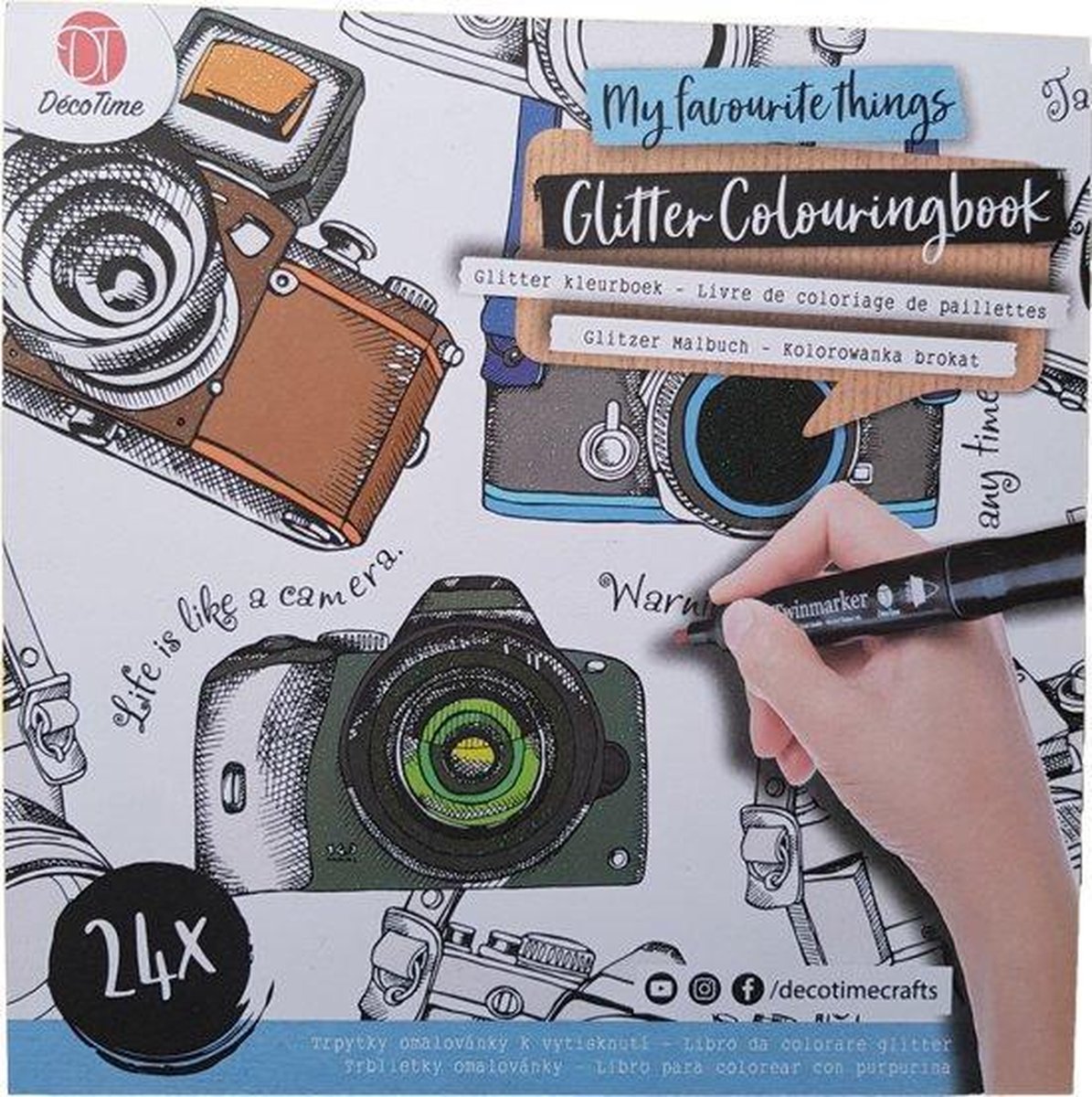 kleurboek glitter - 24 vellen 21 cm lang - 21 cm hoog / fototoestel / inclusief 12 kleurpotloden