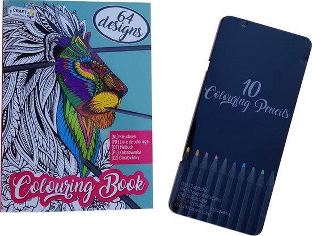 kleurboek met 64 kleurbladen inclusief 10 kleurpotloden boekje is 13 cm lang - 18.5 cm hoog inclusief een flamingo sleutelhanger