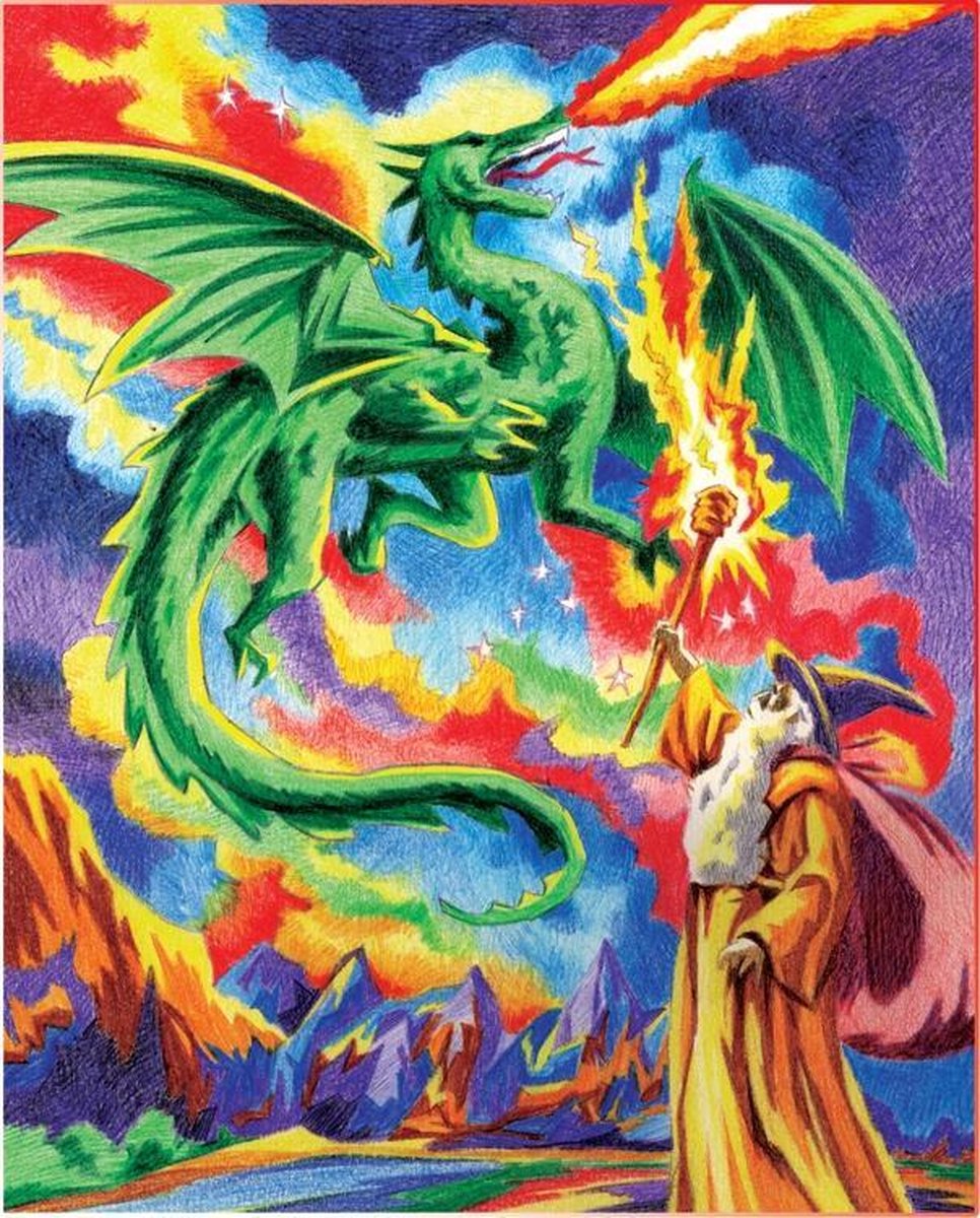 Kleuren op nummer - Kleuren op nummer voor volwassenen - Magische tovenaar en draak 22.23x29.85cm