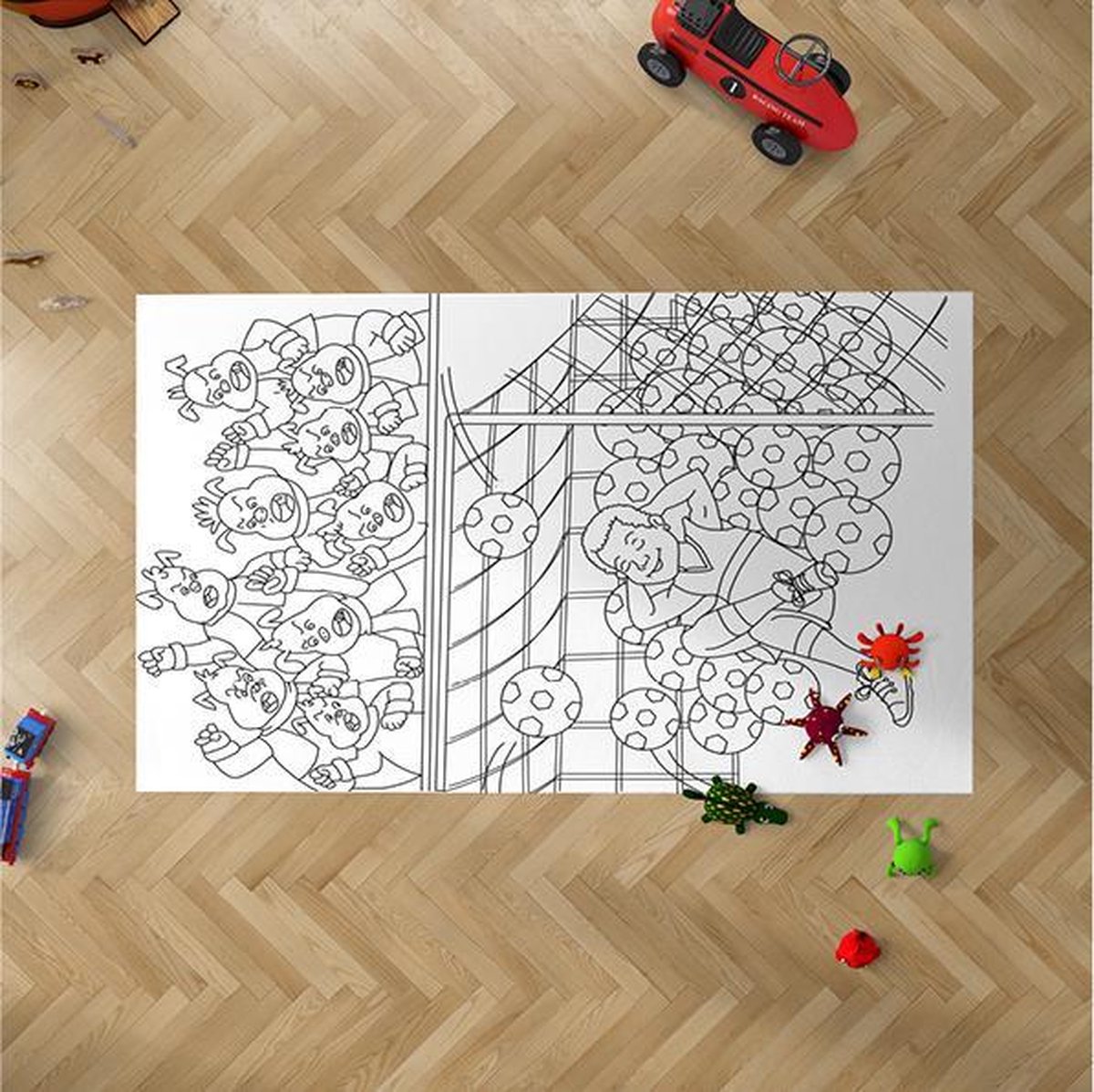 Kleurplaat Poster XXL | Voetbal Laat je fantasie de vrije loop met deze gigantisch poster van Kleurposter. Deze enorme poster zorgt voor eindeloos inkleur plezier en is perfect voor wat plezier binnenshuis. Breng een beetje creatieve rust en een ontsnapping van de schermen, om de kinderen 'en volwassenen' te vermaken. Ze helpen een beetje rust in de dag te brengen en bieden het perfecte tegengif voor al die schermtijd. En als de kinderen het druk hebben met inkleuren, kunnen de volwassenen zich uitleven - en misschien ook genieten van een inkleurtherapie! De Kleurposter kan alleen of met meerdere, om uit te rollen op de vloer, om op te hangen of als tafelkleed gebruikt worden. ? Groter (1200 mm x 840 mm) dan de meeste kleurposters op de markt ? Ontworpen en gedrukt in Nederland ? Gemaakt van speciaal, duurzaam, FSC-geaccrediteerd papier ? Geschikt voor kleurpotloden, viltstiften en verf 100% plezier en ontspanning gegarandeerd! Omdat we verschillende maten posters verkopen kunnen de