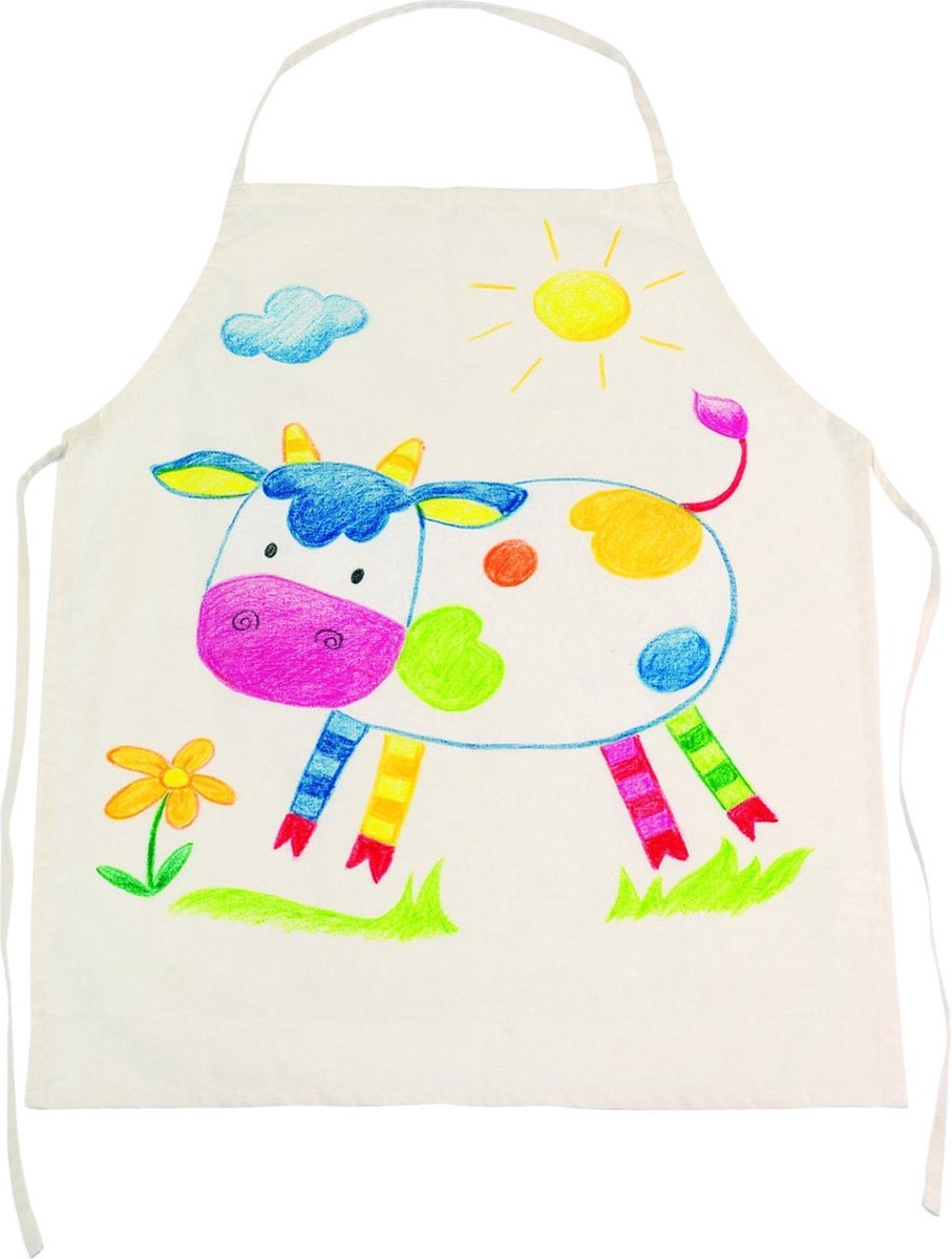 In India vervaardigd kliederschort voor kinderen. Het schort is gemaakt van fairtrade katoen en bedoelt om zelf te kleuren met bijvoorbeeld een textielstift. (5 stuks)