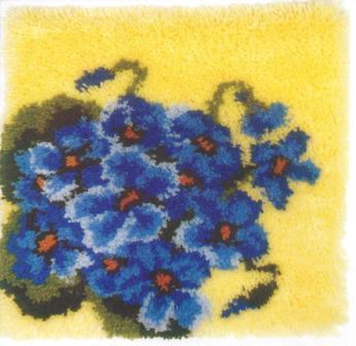 knoopkussen 99653 blauwe viooltjes op geel (incl. knoophaak)