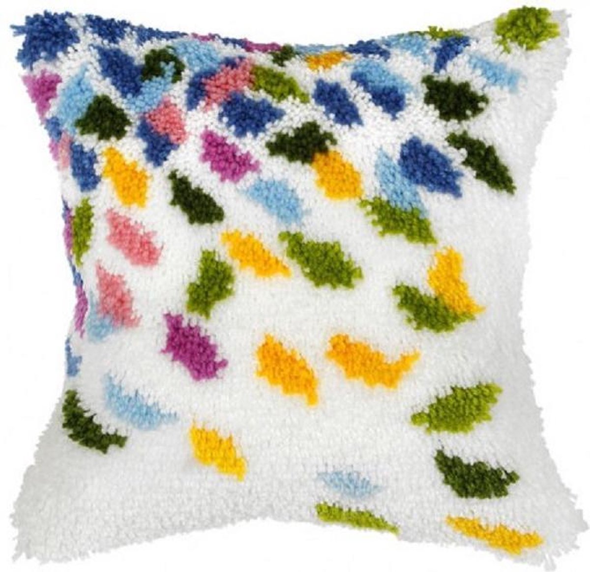 KNOOPKUSSEN ORCHIDEA - BLAADJES 40 x 40 cm Compleet knooppakket, inclusief: Voorbedrukt stramien (52% katoen, 48% polyester) 4,5 kruisje per cm. Acryl garen, voorgesneden in bundles verpakt in plastic Knoophaak Kaart en instructies Afmeting 40 x 40 cm