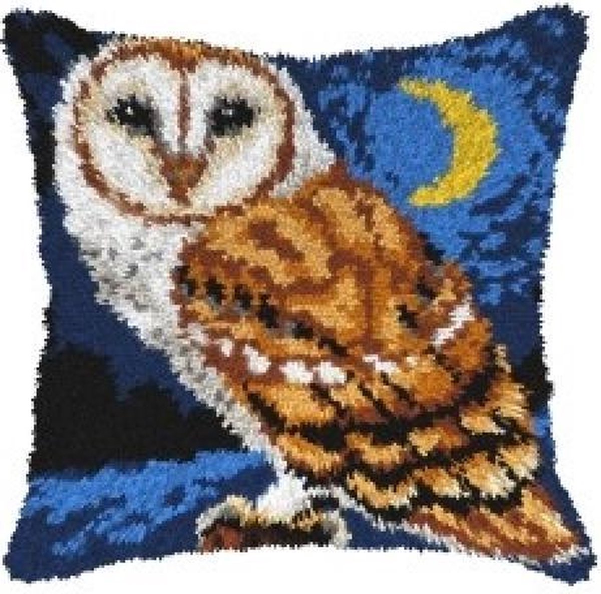 KNOOPKUSSEN ORCHIDEA - UIL 40 x 40 cm Compleet knooppakket, inclusief: Voorbedrukt stramien (52% katoen, 48% polyester) 4,5 kruisje per cm. Acryl garen, voorgesneden in bundles verpakt in plastic Knoophaak Kaart en instructies Afmeting 40 x 40 cm
