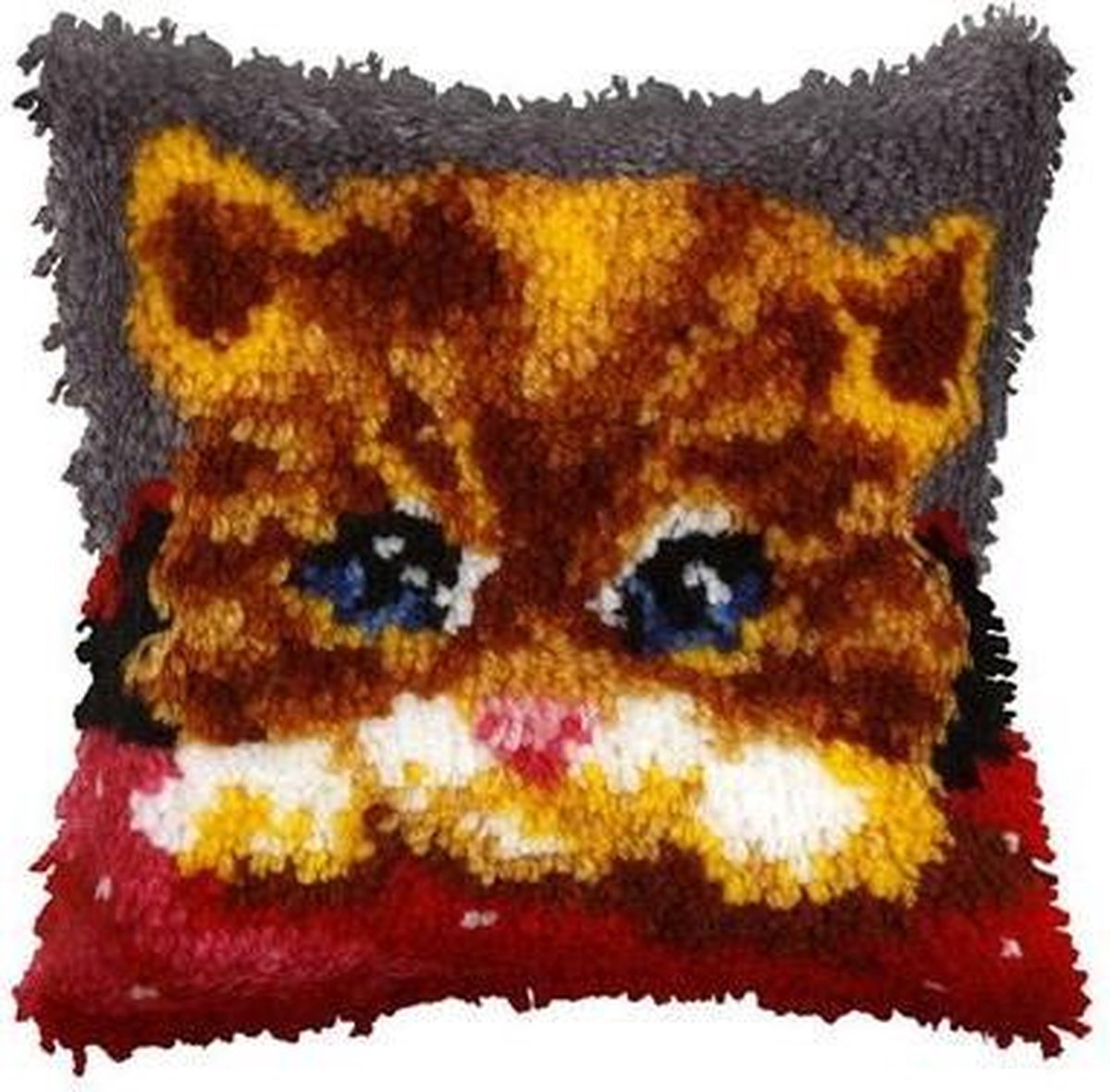 Knoopkussen pakket poesje van orchidea om te knopen.Het knoopkussen 25.5x25.5 cm is op een voorbedrukt stramien.incl. knoophaak, werkwijze en voorgesneden knoopdraad om makkelijk te knopen.