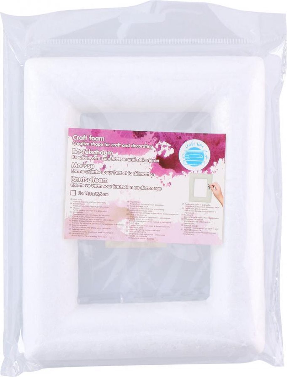 Ben jij een echte knutselaar? Een vierkant gemaakt van Knutselfoam om zelf te beschilderen en te versieren of te gebruiken bij je knutsel project. ook als fotolijstje te gebruiken Afmeting: 9,5x15x5cm rond, 15gr.