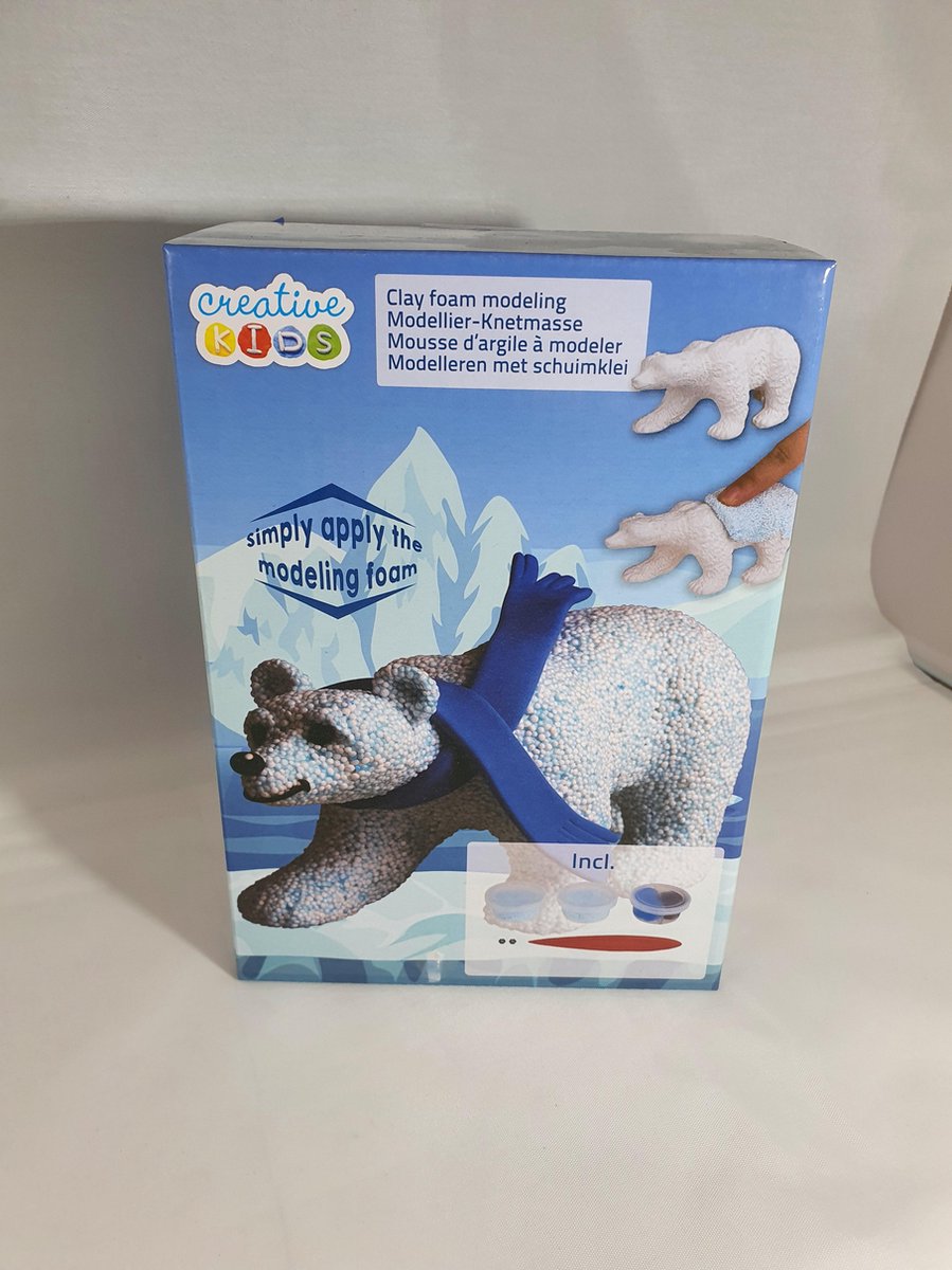 Maak een prachtige ijsbeer met de kleurrijke Clay foam. Dit is een zelfhardende boetseerklei. compleet pakket met klei , basis figuur en spatel