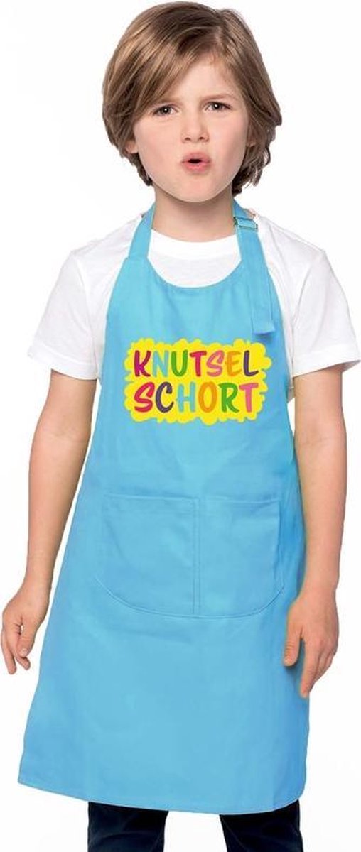 Knutselschort blauw voor jongens en meisjes. Op dit schort staat groot knutselschort in vrolijke letters. Leuk schort voor echte knutselaars. Dit schort voor kinderen is verstelbaar doormiddel van een metalen sluiting aan de hals. Het schort bevat een grote zak aan de voorkant met 2 vakken. Afmeting: 60 x 44 cm. Materiaal: 100% katoen. Kwaliteit: 280 grams.