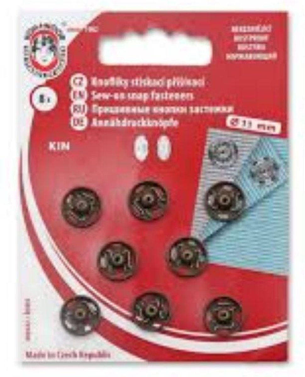RODUCT OMSCHRIJVING Aannaaidrukknopen worden snel en eenvoudig vastgenaaid en vereisen geen knoopsgat. Ze zijn uitermate geschikt voor een grote verscheidenheid aan projecten, afhankelijk van de maat van de drukknoop. Zo kunt u kleine drukknopen gebruiken voor het sluiten van een kraagpunt of mouw en grotere drukknopen voor het sluiten van een blouse! Deze praktische aannaaidrukknopen zijn verkrijgbaar in maten variërend van 5-42mm en in diverse kleuren. Deze Ouud Messing kleurige aannaaidrukknopen zijn 11mm breed en elke kaart bevat 8 stuks.