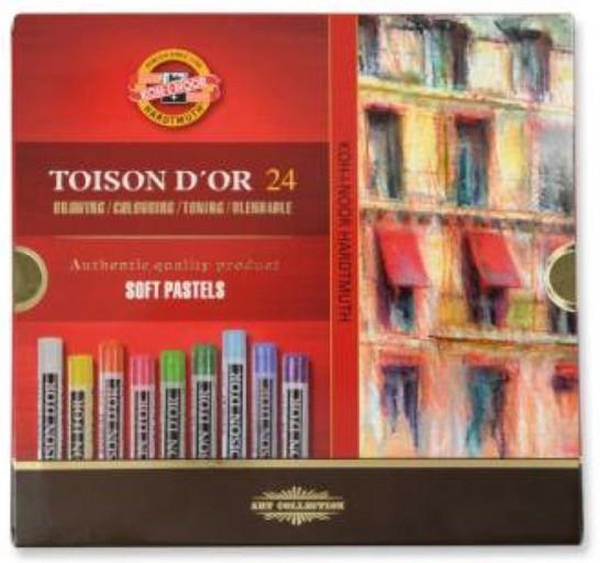 Set of Artists Toison d' Or ronde soft pastels. 10 mm doorsnee, 75 mm lang. Professioneel pastelkrijt, uitstekende kleurafgifte. Grote oppervlakken zijn makkelijk aan te brengen en kleuren zijn goed met elkaar te blenden.