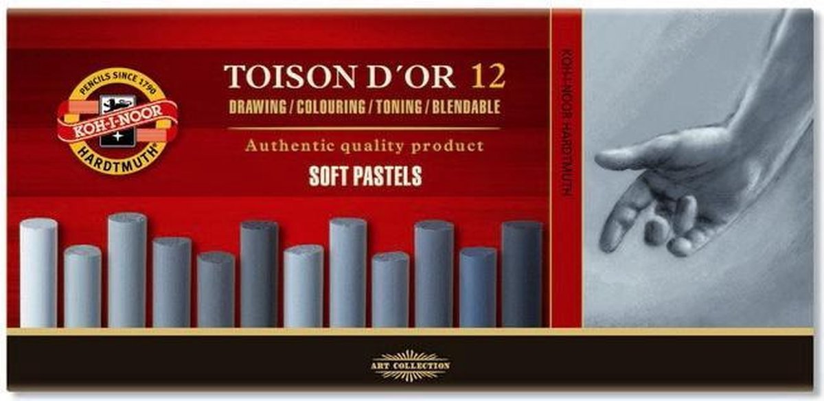 Set of 12 powdery grey pastels with a wrap, diameter of 10 mm and length of 75 mm. They are particularly suitable for black and white drawings. When drawing, it is possible to use a pastel holder KOH-I-NOOR Versatil. Once finished, we recommend to stabilize the drawing with a fixative.