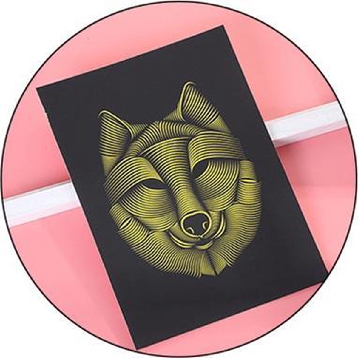 Mooie krastekening uit de Gouden Dieren serie. Het pakket bevat 1 schilderij van 21x25cm groot. De kras tekening wordt geleverd als een zwart blad met grijze vlakken er op, deze grijze vlakken dient u weg te krassen met de bijgeleverde kraspen waardoor de afbeelding zichtbaar wordt. Inhoud: - 1 Krastekening - 1 Kraspen
