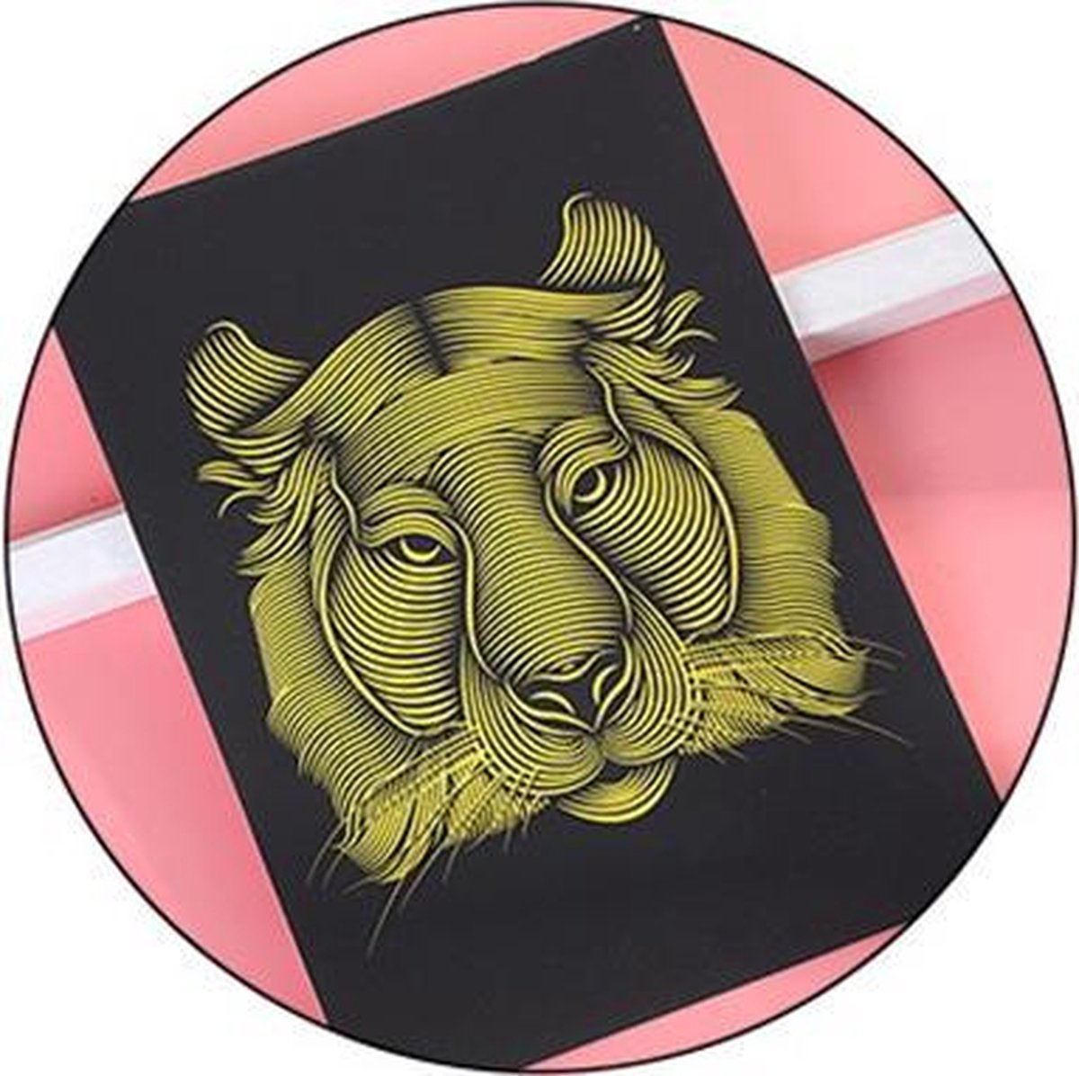 Mooie krastekening uit de Gouden Dieren serie. Het pakket bevat 1 schilderij van 21x25cm groot. De kras tekening wordt geleverd als een zwart blad met grijze vlakken er op, deze grijze vlakken dient u weg te krassen met de bijgeleverde kraspen waardoor de afbeelding zichtbaar wordt. Inhoud: - 1 Krastekening - 1 Kraspen