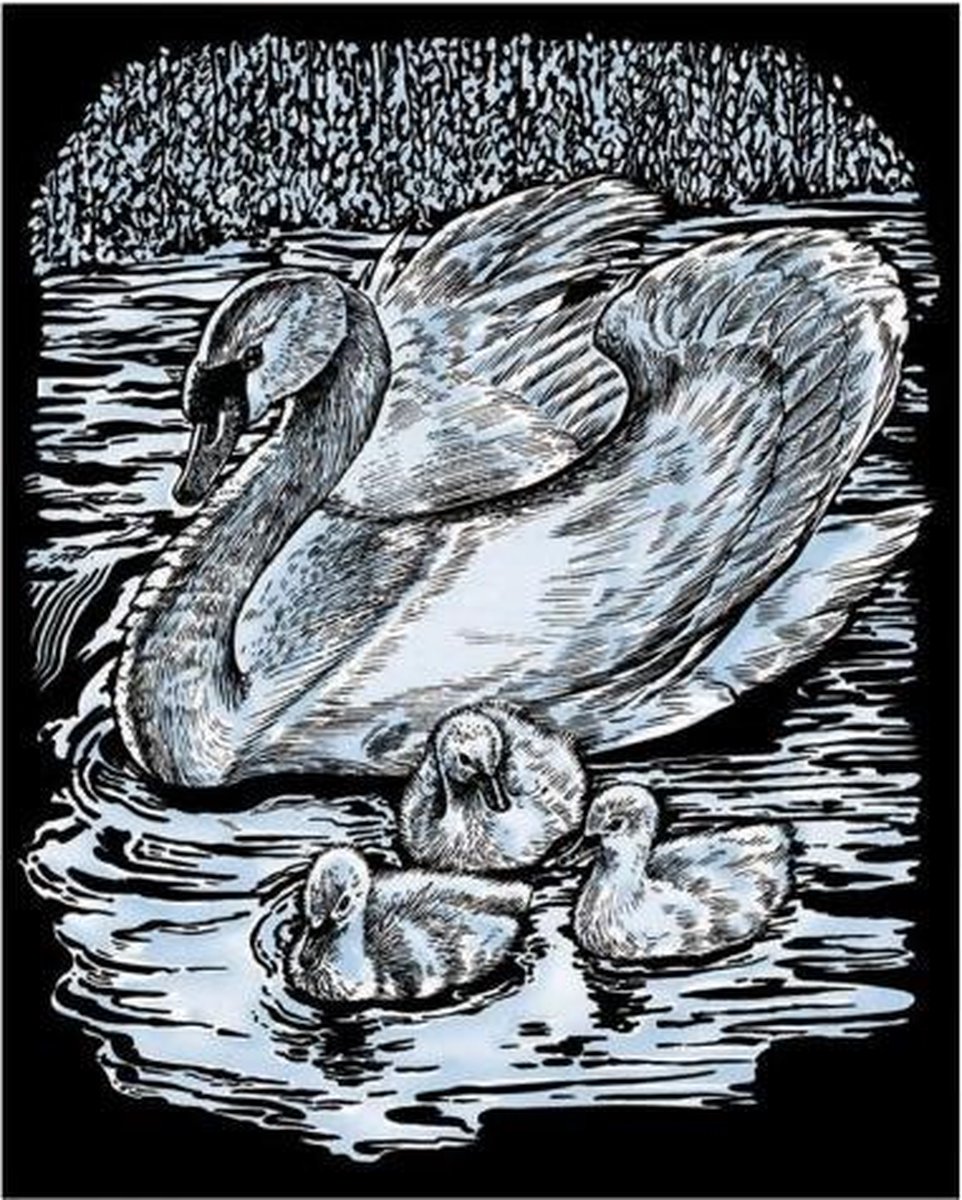 Kras Tekening "Sequin Art" Zwanen Zilver