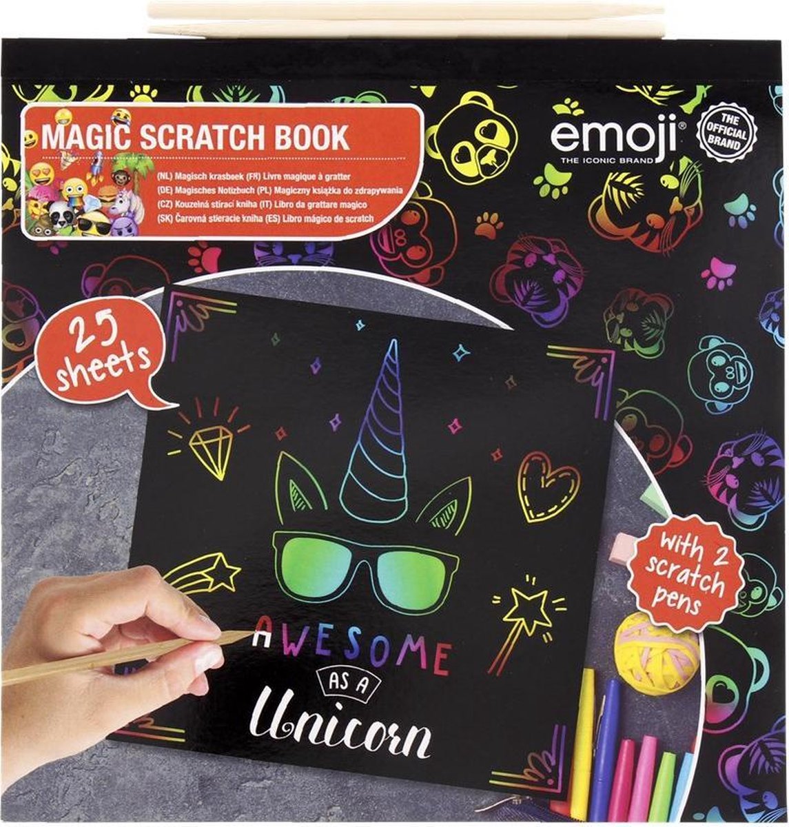 Ben je een fanatieke gebruiker van vrolijke emoji's? In dit krasboek tover je jouw favoriete emoji's tevoorschijn. Magisch krasboek Inclusief 2 kraspennen Bevat 25 kleurplaten met populaire emoji's