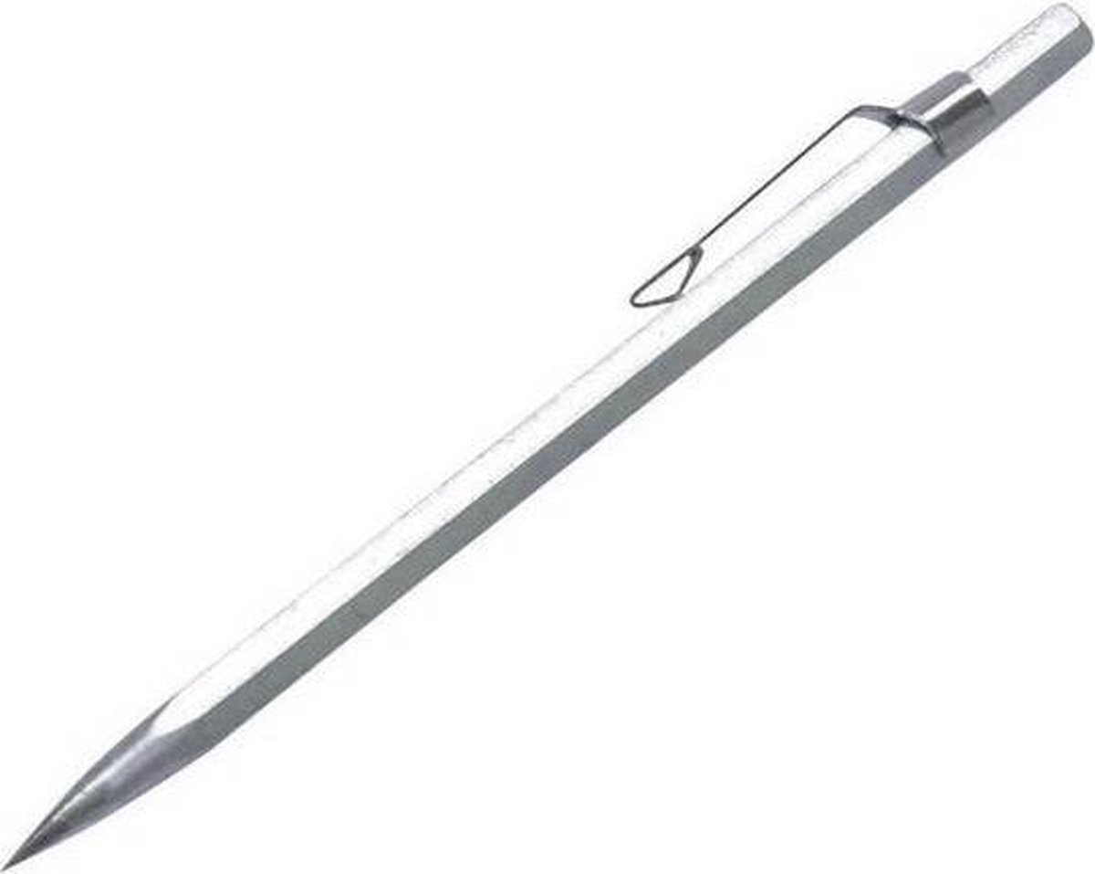 Kraspen Met Hardmetalen Punt Potloodmodel, met clip (vestzak) Kraspen met een zéér scherpe hardmetalen punt, ontworpen om in allerlei harde materialen (Metalen, Kunststof, Composiet etc.) te kunnen aftekenen! Let op, wanneer men ter vervanging bij bvb. mandela's deze kraspen wil gaan gebruiken is het raadzaam om de hele scherpe punt van de kraspen wat minder scherp te maken door bijvoorbeeld de punt van de kraspen over een baksteen, betontegel oid heen en weer te bewegen, op die manier is het mogelijk de extreme scherpte er wat af te krijgen, slijten zal deze punt niet zomaar doen wand de punt is van WIDIA ( betekent "so hard "WIe DIAmant")