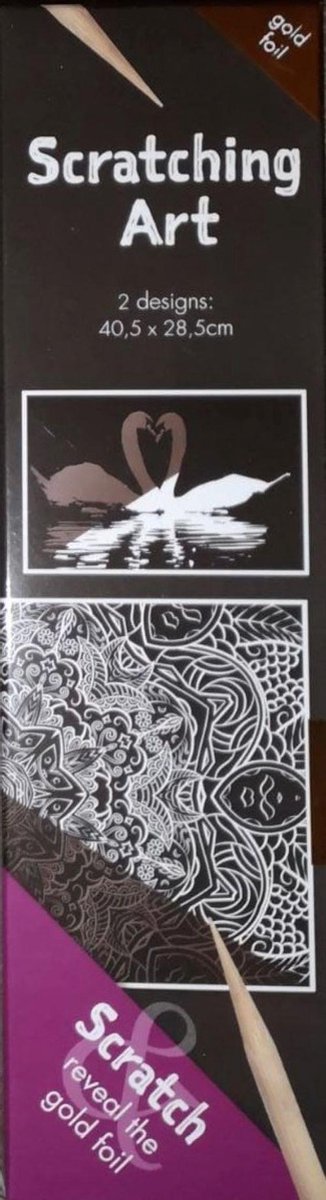 Krastekeningen – kras tekening – kras kleurplaat - Kras poster – kras kunst – krasfolie – krasfolie tekening - Goud - krasfolie - Set van 2 - Mandala - Zwaan - Extra groot - XXL