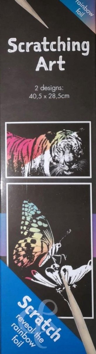 Krastekeningen – kras tekening – kras kleurplaat - Kras poster – kras kunst – krasfolie – krasfolie tekening - Regenboog - krasfolie - Set van 2 - Tijger - Vlinder - Extra groot - XXL