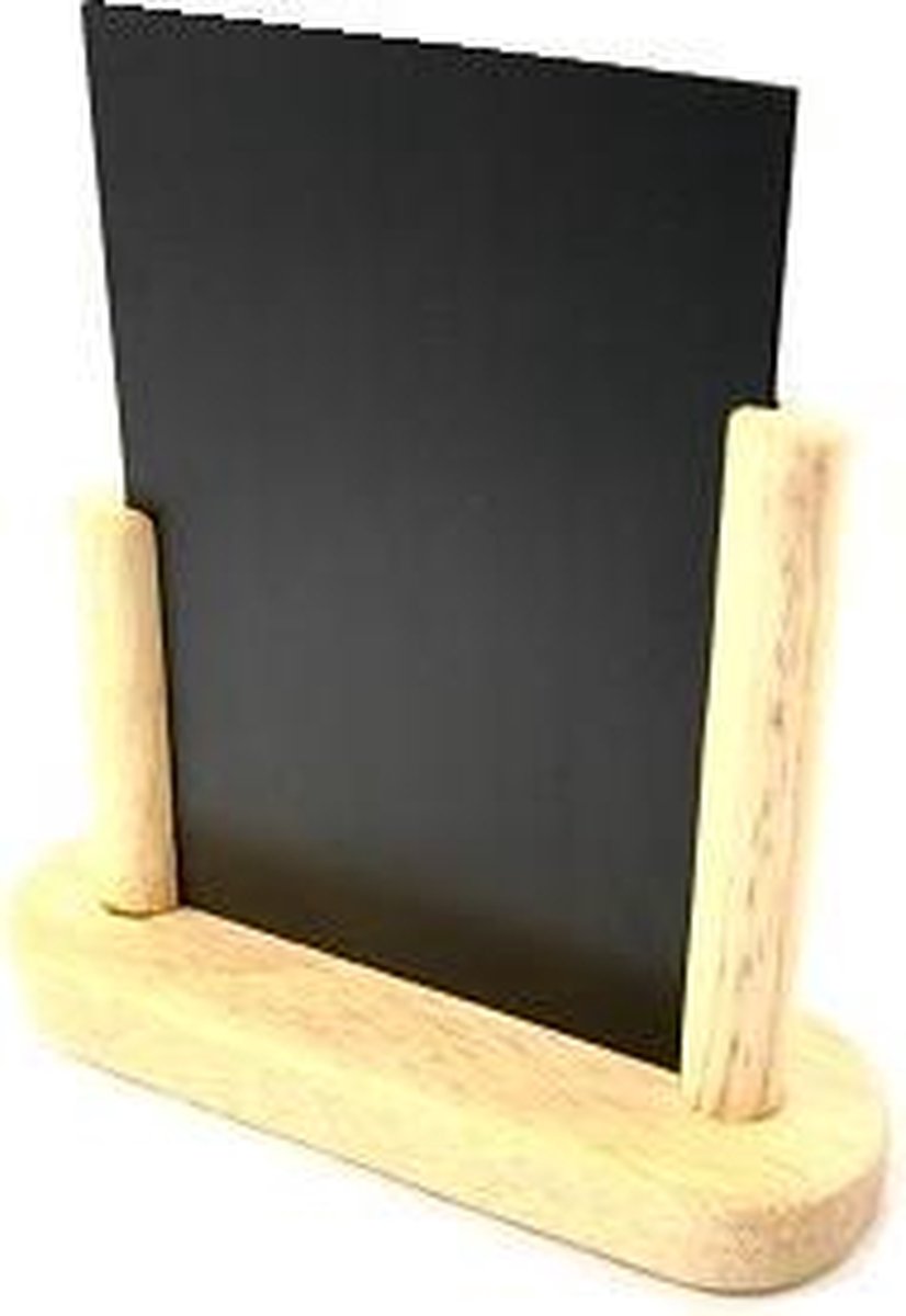 Het meest gewaardeerde tafelkrijtbordje van Nederland! Dit krijtbordje voor op tafel is mooi afgewerkt met een zwart houten standaard. Het bordje is ideaal in gebruik voor aanbiedingen en menu's en is aan beide kanten beschrijfbaar. Kenmerken: Afmeting 15 x 21 cm Voor watervaste en waterbasis krijtstift (niet geschikt voor gewone krijtjes) Makkelijk te reinigen Houten standaard