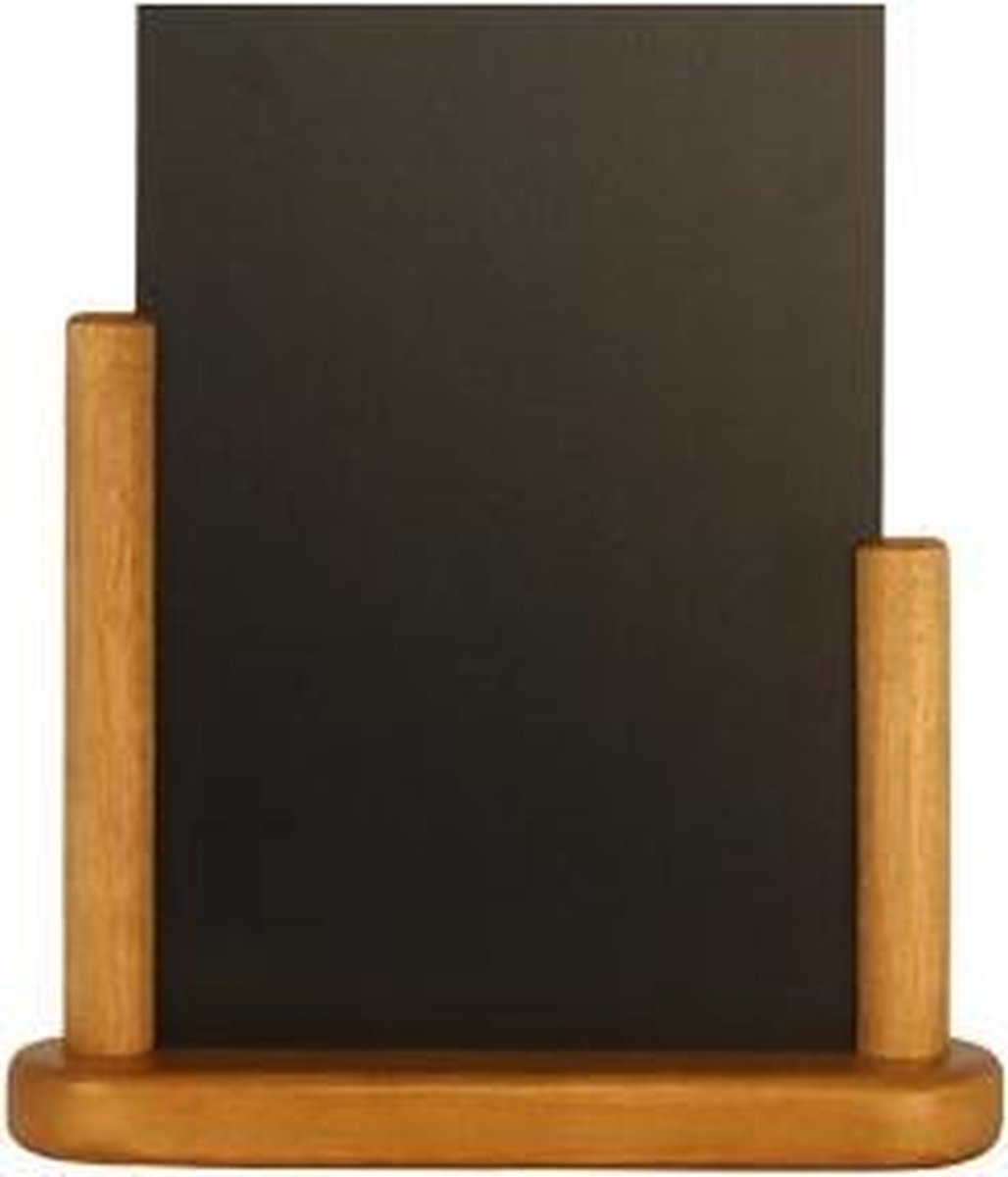 Het meest gewaardeerde tafelkrijtbordje van Nederland! Dit krijtbordje voor op tafel is mooi afgewerkt met een teak houten standaard. Het bordje is ideaal in gebruik voor aanbiedingen en menu's en is aan beide kanten beschrijfbaar. Kenmerken: Afmeting 15 x 21 cm Voor watervaste en waterbasis krijtstift (niet geschikt voor gewone krijtjes) Makkelijk te reinigen Houten standaard