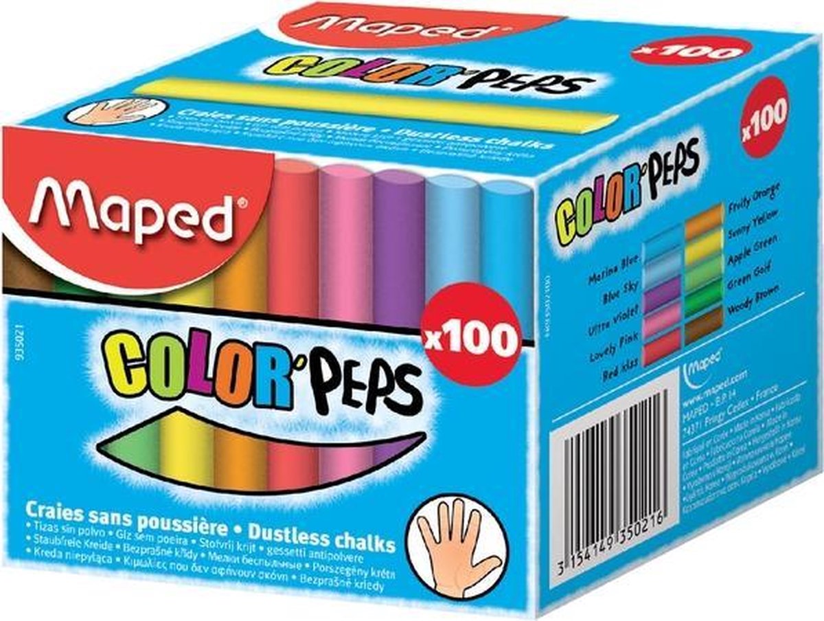 Krijtjes assorti kleur stofvrij - in doos x 100