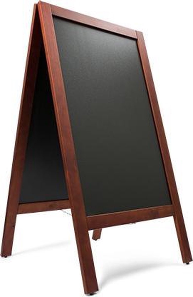 Het meest verkochte krijtstoepbord met 2 jaar garantie! De poten zijn voorzien van rubberen doppen tegen waterschade en overige beschadiging van het hout. Beide kanten van dit krijtbord zijn beschrijfbaar met krijtstiften, ideaal voor snel wisselende reclame uitingen en menu's. Kenmerken: Buitenmaat 75 x 135 cm ( bord 58,5 x 94 cm ) Volledig gemonteerd geleverd Voor watervaste en waterbasis krijtstift ( niet geschikt voor gewone krijtjes ) Makkelijk te reinigen Houten frame