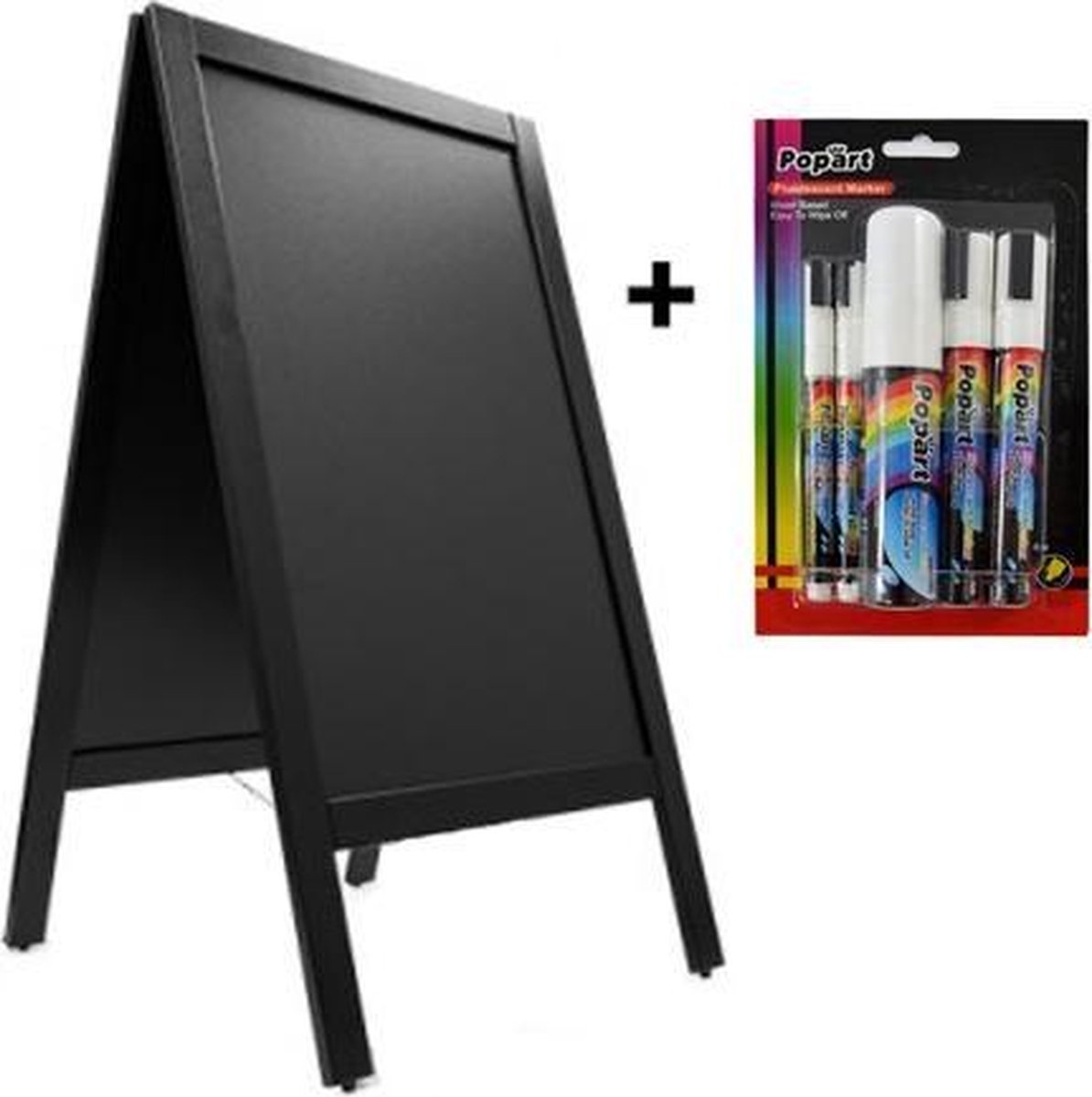 INCLUSIEF 2 GRATIS KRIJTSTIFTEN Het meest verkochte krijtstoepbord met 2 jaar garantie! De poten zijn voorzien van rubberen doppen tegen waterschade en overige beschadiging van het hout. Beide zijden van dit krijtbord zijn beschrijfbaar met krijtstiften, ideaal voor snel wisselende reclame uitingen en menu's. Door klein formaat makkelijk verplaatsbaar. Kenmerken: •Gratis krijtstiften: 2x wit 15 mm •Buitenmaat 75x135cm (bord 58,5x94cm) •Volledig gemonteerd geleverd •Voor watervaste en waterbasis krijtstift (niet geschikt voor gewone krijtjes) •Makkelijk te reinigen •Houten Frame