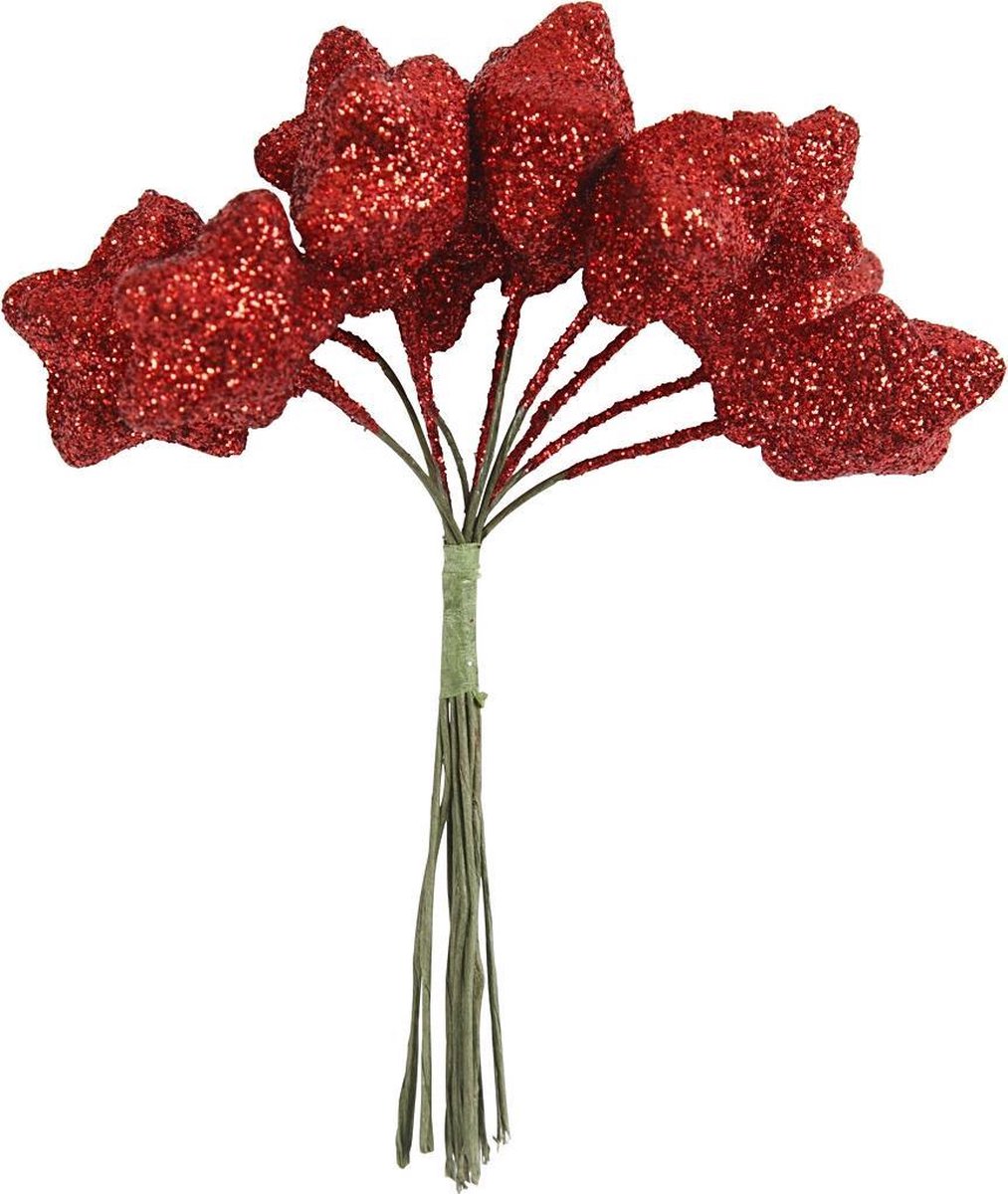 Kunst sterren. kerstrood. d: 25 mm. 12 stuk/ 1 doos