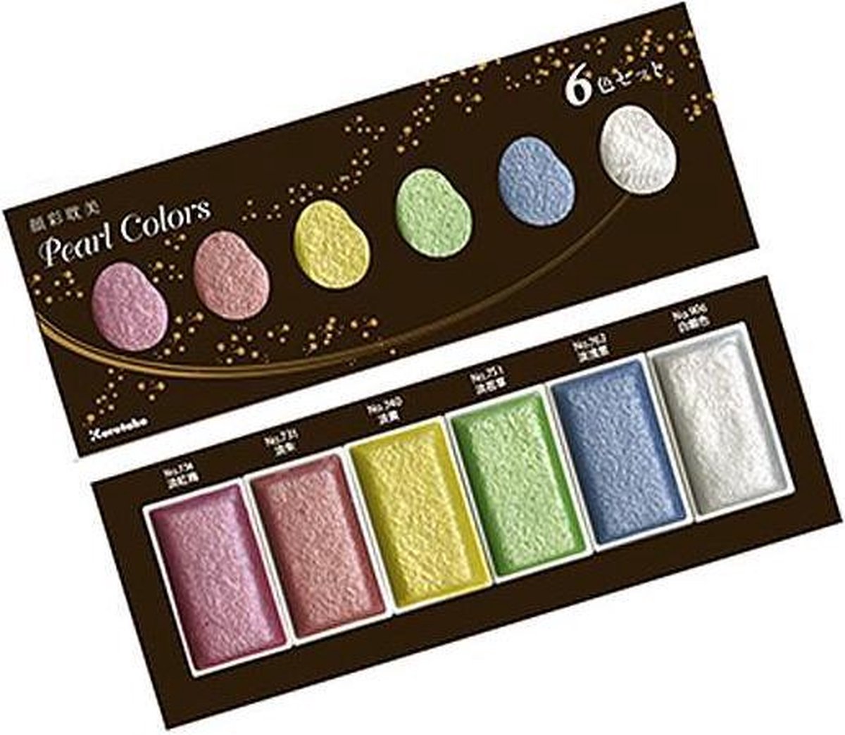 Deze set bevat 6 kleuren op waterbasis: Pearl Scarlet Red (No. 731), Pearl Scarlet Red (No. 731), Pearl Lemon Yellow (No. 740), Pearl May Green (No. 751), Pearl Cobalt Blue (No. 762), en White Gold (No. 906).