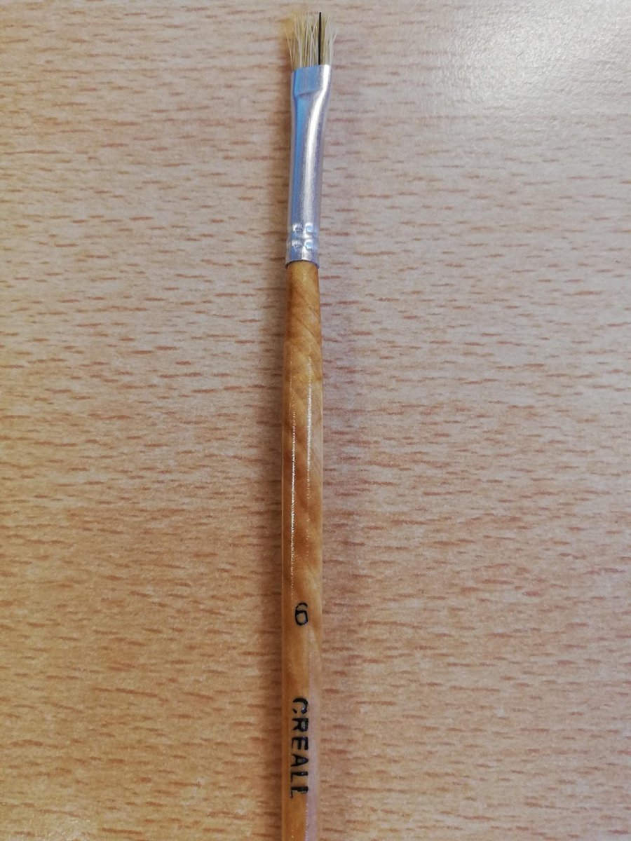 Perfecte penselen. Mooi gelakt blank hout. Varkenshaar ( voor acryl-, olie - en plakkaatverf. Met lange steel voor meer veiligheid. Aluminium huls. Er worden 12 penselen van nr. 6 geleverd. Hout is van 100% FSC.