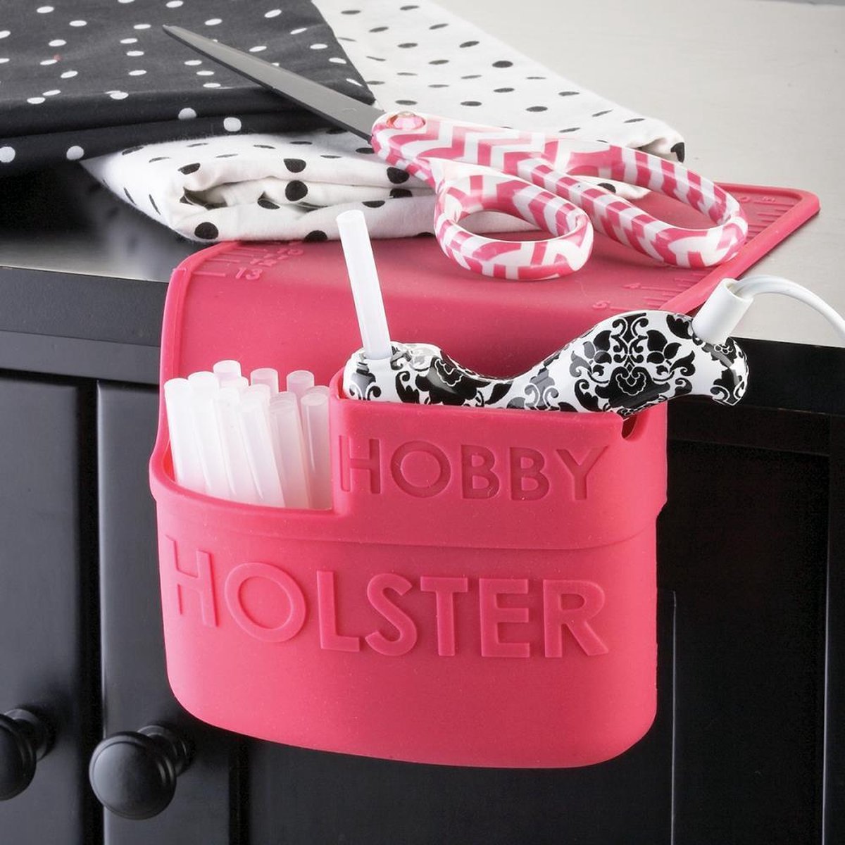 Een siliconen houder voor uw materiaal. Houdt zich vast aan elke gladde oppervlakte en is hittebestendig (tot 120°Celcius). Kleuren: groen, blauw, roze