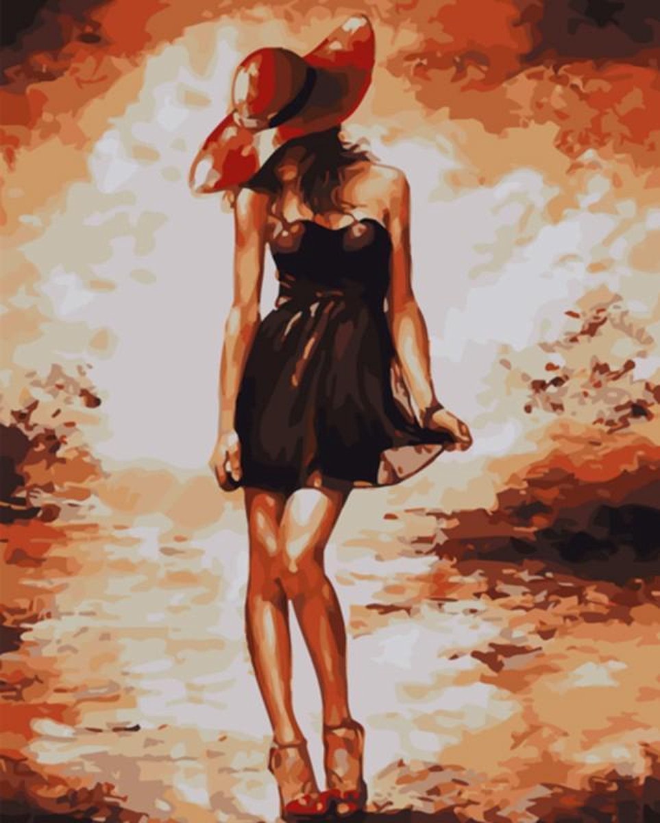 Lady in red - Schilderen op nummer - verven op nummer - kleuren op nummer - hobby pakket - paint by number - hobbypakket - 50x40cm - los canvasdoek
