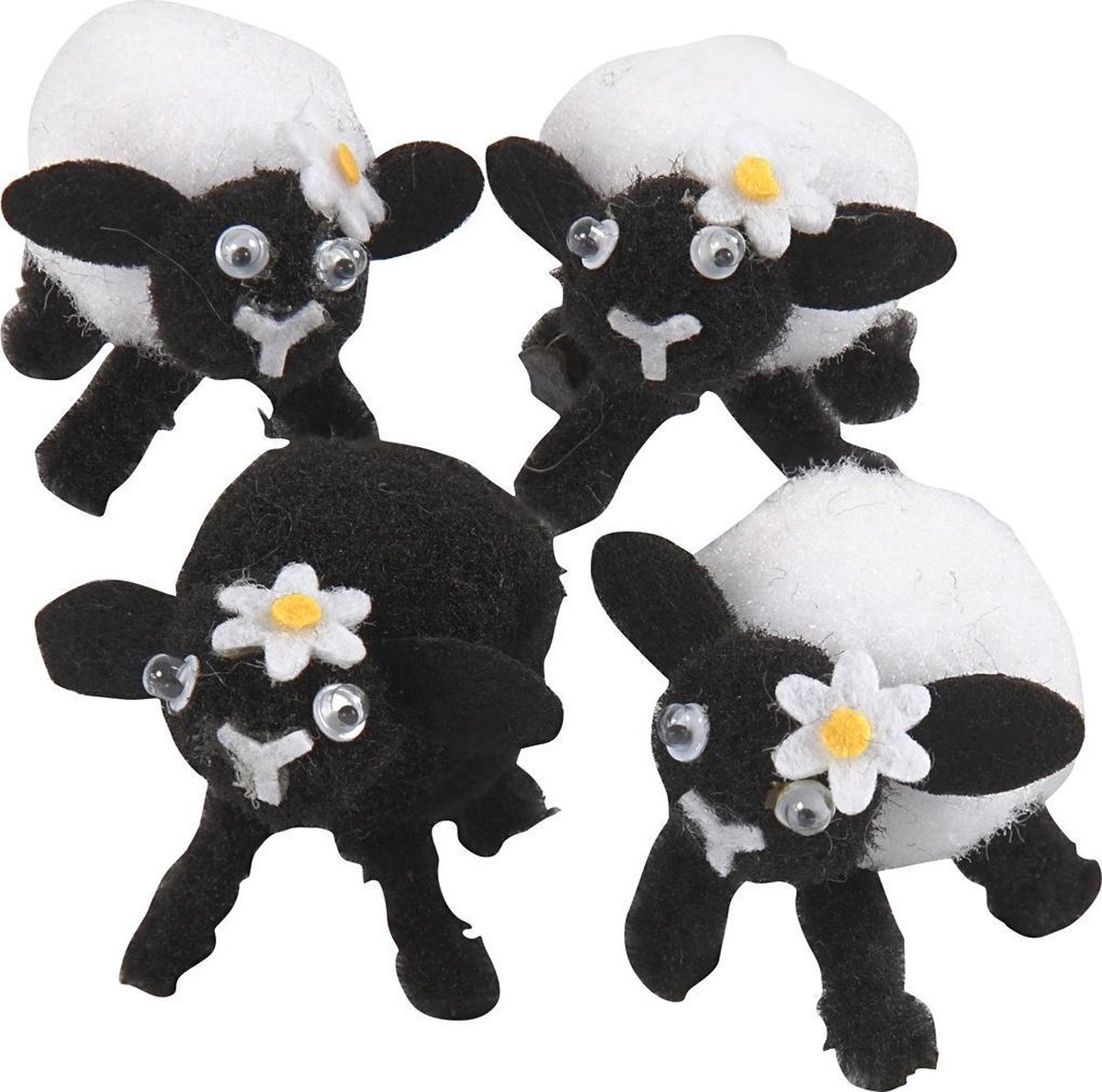 Lammetjes. zwart. wit. H: 35 mm. 4 stuk/ 1 doos