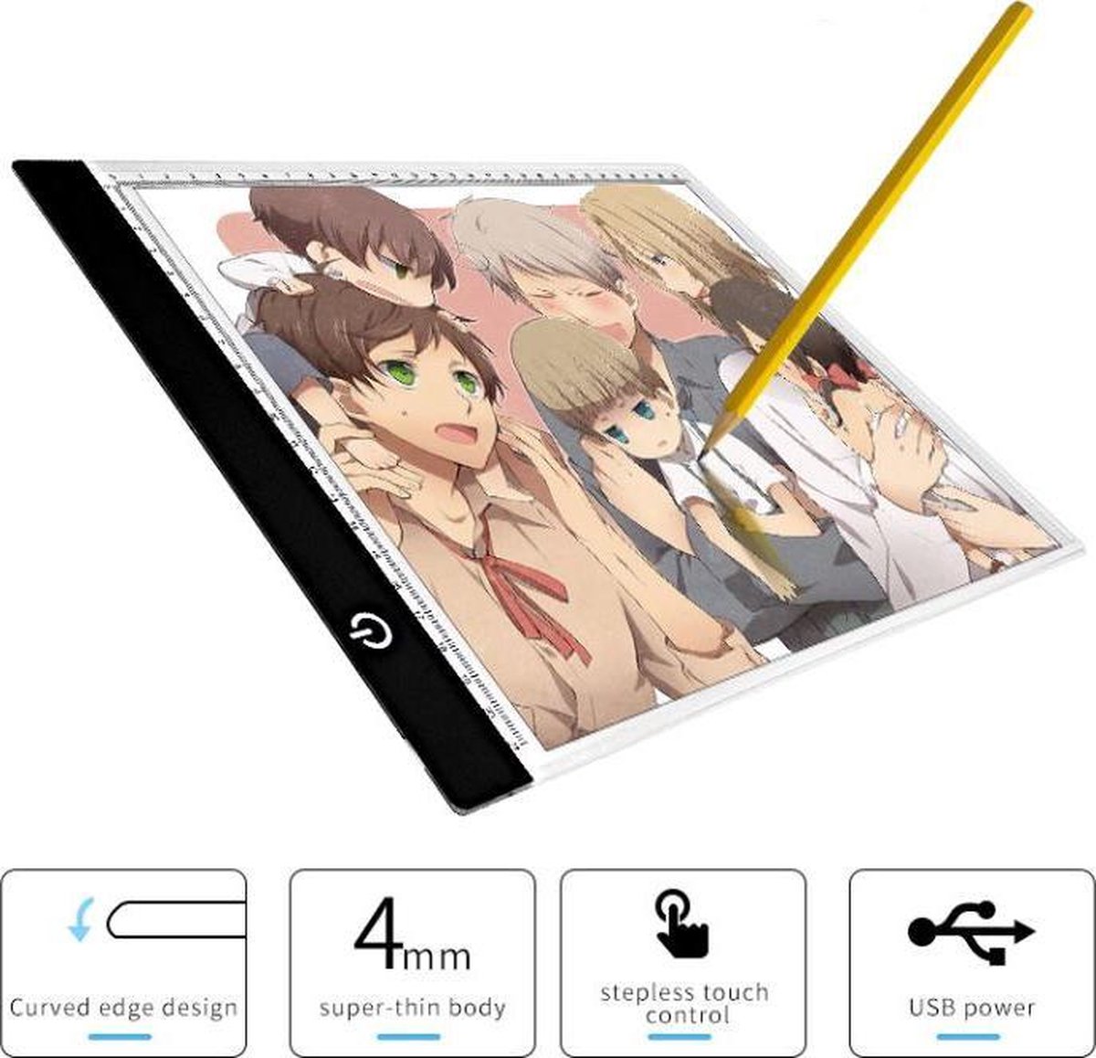 led tekenbord Met behulp van dit lichttekenbord is het maken van de mooiste tekeningen een stuk gemakkelijker. Het bord kan ook voor andere doeleinden gebruikt worden. Het wordt werkt op accu dus vereist geen bekabeling. Het bord is gemakkelijk oplaadbaar met usb kabel die meegeleverd is. De helderheid van het tekenbord is zelfs aan te passen op drie verschillende standen. Kenmerken ?Erg licht en duurzaam ontwerp ?Super energiebesparing ?Gemakkelijk oplaadbaar door middel van usb kabel ?Eenvoudig te gebruiken, werkt op accu ?Geschikt voor tekeningen of andere doeleinden Specificaties: Dikte: 4 mm Materiaal: Acrylic Afmetingen: 343 * 235 * 4 mm (a4 formaat) Kleur: Wit Dimming: 3 helderheid- standen Pakket: 1 x led tekenbord 1 x usb oplaadkabel 1 x gebruikershandleiding