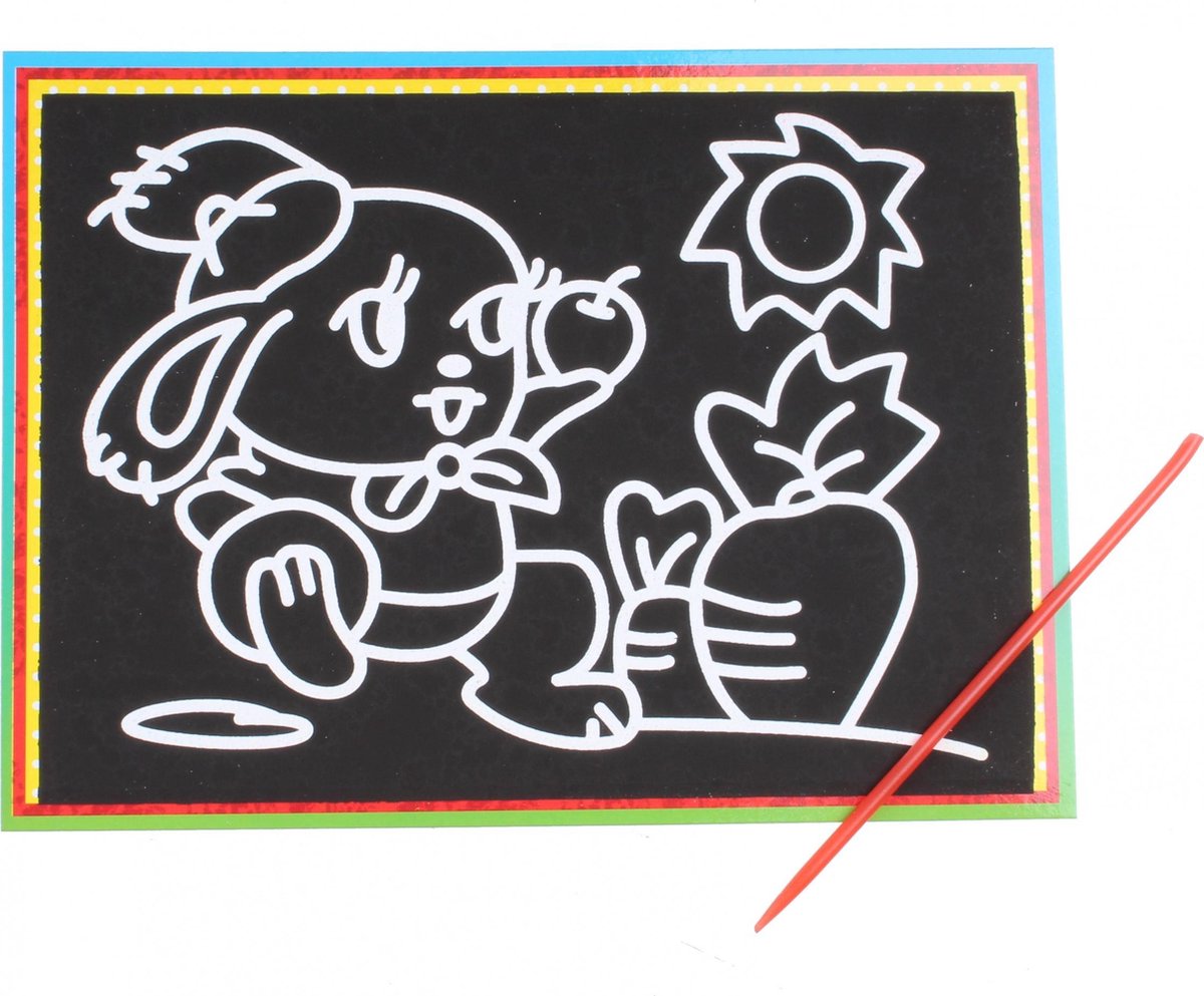LG-Imports kraskaart konijn Kras over de figuren heen en ontdek allerlei kleuren! Bij de kraskaart is een handig pennetje bijgevoegd waarmee het krassen heel eenvoudig is. Specificaties: Geslacht: junior Kleur: zwart, multicolor Materiaal: papier Leeftijd: vanaf 4 jaar Inhoud: 1 Kraskaart 1 Kraspen