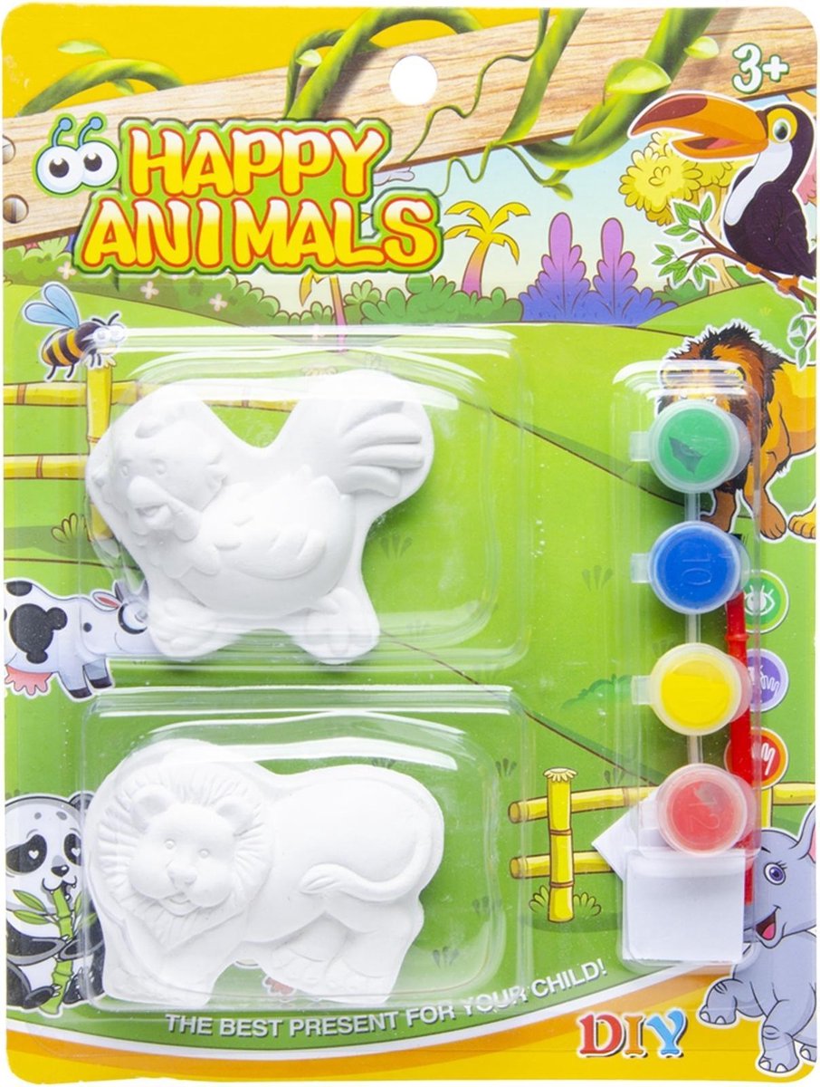 LG-Imports schilderset Met deze schilderset van LG-Imports kun jij de mooiste creaties maken op jouw favoriete dieren! Met deze prachtige set schilder je eenvoudig op het dier, met als gevolg een eindproduct waar ze echt trots op kunnen zijn. De set wordt geleverd met twee dieren, namelijk een kip en een leeuw, vier potjes verf en een kwastje. Specificaties: Kleur: wit Geslacht: junior Materiaal: keramiek, kunststof Leeftijd: vanaf 4 jaar Inhoud: 4 Potjes verf 1 Kip 1 Leeuw 1 Kwast