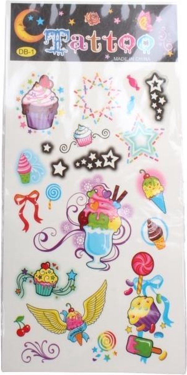 LG-Imports cupcaketattoo Maak indruk op al jouw vrienden deze leuke tattoos. De tattoos zijn makkelijk aan te brengen met water en een sponsje. Specificaties: Kleur: multicolor Geslacht: junior Materiaal: papier Afmetingen: 17 x 8 cm (L x B) Leeftijd: vanaf 4 jaar