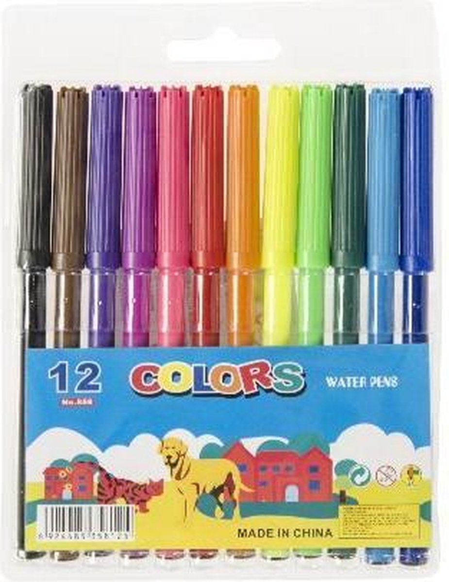 LG-Imports viltstiften gekleurd Maak de mooiste tekeningen met deze viltstiften. In de set zitten 12 verschillende kleuren. Niks houdt jou nu nog tegen om de mooiste tekeningen te maken. Specificaties: Kleur: multicolor Geslacht: junior Materiaal: kunststof Leeftijd: vanaf 3 jaar Inhoud: 12 Viltstiften
