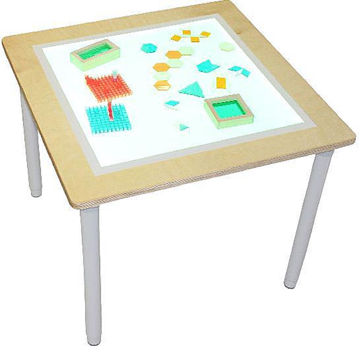 Lichttafels kunnen op veel manieren worden gebruikt Voor verschillende creatieve technieken, het leggen van spellen met transparante materialen of voor het trainen van de zintuigen.Gebaseerd op de nieuwste LED technologie, energiebesparend en veilig. Het vlakke lichtpaneel (55 x 55 cm) is verzonken in een 22 mm dik frame van beukenhout, de plaat heeft een afmeting van 75 x 75 cm. Er worden 4 korte voetjes meegeleverd om de lichtunit op een vlakke ondergrond te gebruiken. De witte lichttafel heeft alleen de mogelijkheid om het licht aan of uit te doen.Eventueel zijn er losse in hoogte verstelbare pootjes 60-88 cm leverbaar. Materiaal: metaal, kunststof, frame: hout Afmetingen: 55 x 55 cm Ga naar artikel (Duits Engels)