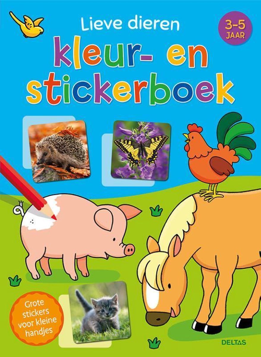 Aan dit leuke stickerboek zal je kind urenlang kleur- en plakplezier beleven! Op elke pagina kan je kind een grote sticker plakken: een konijn, een giraf, een beer en nog heel veel andere kleine en grote dieren. Daarna kan je kind de tekening mooi inkleuren. Op die manier maakt hij of zij niet alleen kennis met de wereld van de dieren, maar wordt ook spelenderwijs de woordenschat uitgebreid! Voor kinderen van 3 tot 5 jaar.