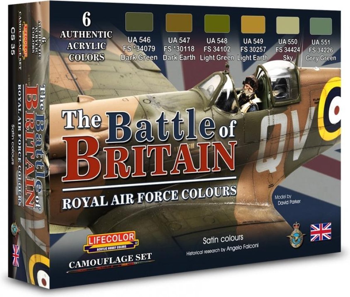Set van 6 zijdemat acryl kleuren voor RAF vliegtuigen + 6 pipetjes ml Zijdemat acryl kleuren set voor de camouflage op vliegtuigen dan de Royal Air Force. LifeColor laat zich prima verwerken met zowel penseel en kwast als met een airbrush. Bij airbrush gebruik moet er wel verdund worden, dit kan met water maar het beste resultaat bereik je met LifeColor thinner. LifeColor raadt aan om met een lage druk te werken.