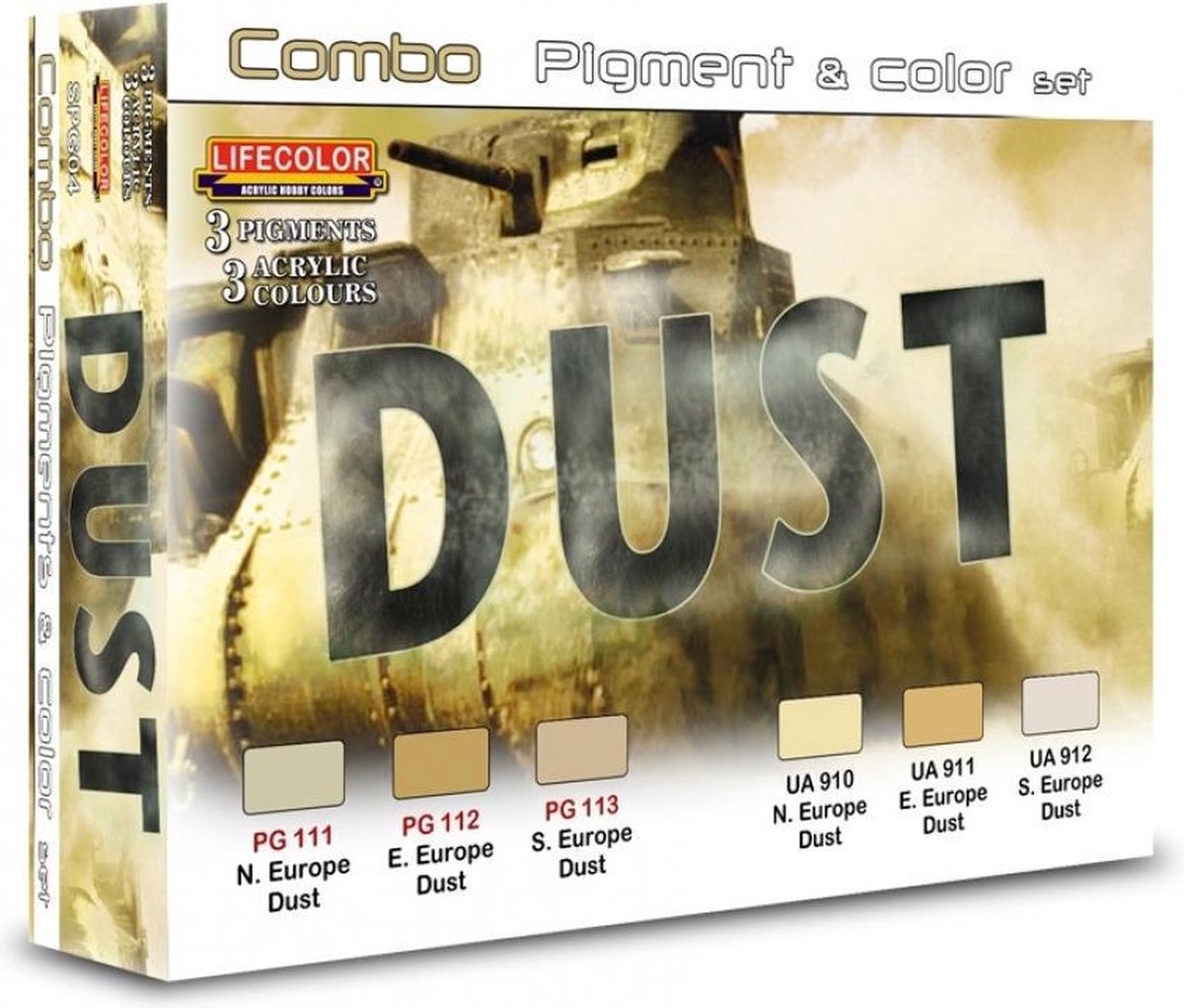Set van 3 kleuren en 3 pigmenten om stof te simuleren + 6 pipetjes 2ml Realistische stofeffecten realiseren op uw modellen LifeColor laat zich prima verwerken met zowel penseel en kwast als met een airbrush. Bij airbrush gebruik moet er wel verdund worden, dit kan met water maar het beste resultaat bereik je met LifeColor thinner. LifeColor raadt aan om met een lage druk te werken.